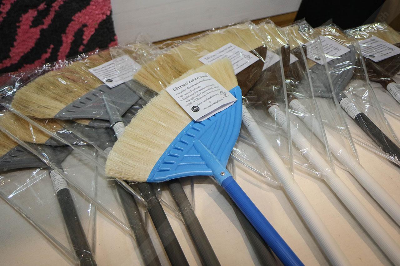 พูดถึง ไม้กวาด บางคนอาจจะรู้สึกธรรมดา แต่รู้หรือไม่? ไม้กวาดของที่นี่แตกต่าง เพราะทำจากเส้นใยของต้นป่านศรนารายณ์ ที่มีความแข็งแรงคงทน แต่ไม่กระด้าง เหมือนไม้กวาดทั่วๆ ไปนะ บอกเลยว่าหมดปัญหาการหลุดร่วงจากด้ามไม้เหมือนไม้กวาดดอกหญ้าทั่วๆ ไป แล้วไม่มีฝุ่นเกาะด้วยแหละ แต่ต้องดูแลดีๆ หน่อย ห้ามเปียกน้ำ เหมาะสำหรับการกวาดภายในบ้าน ที่เก๋ไก๋โดนใจคือ เขามีโบรชัวร์บอกวิธีดูแลติดบนสินค้าทุกชิ้น สนนราคาชิ้นละ 89 บาท