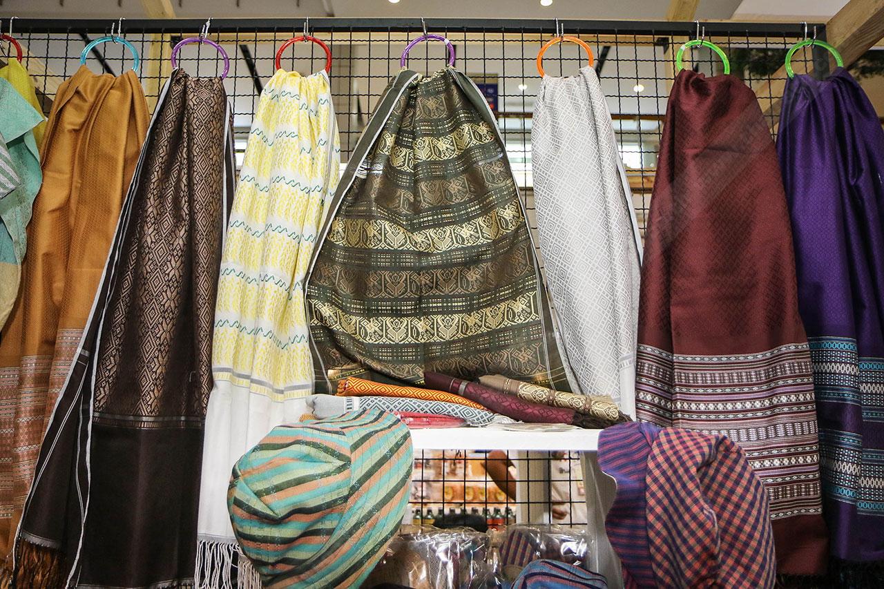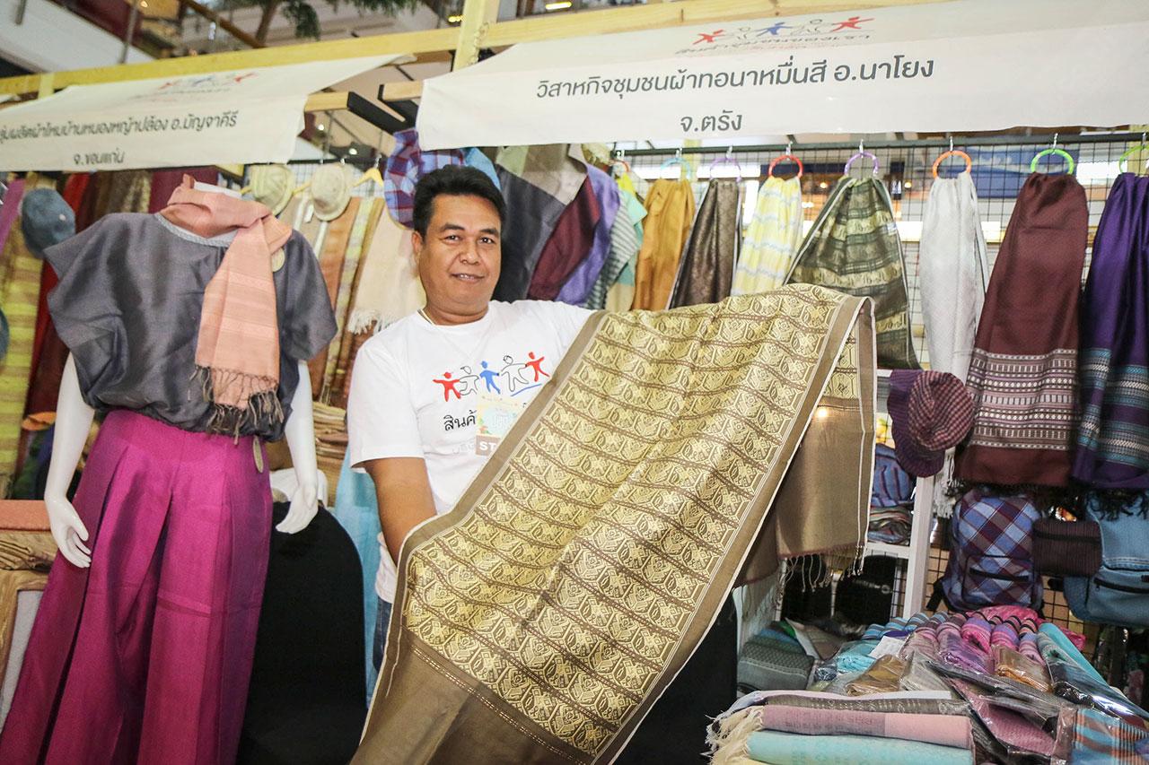 ใครจะไปรู้ว่า จ.ตรัง ก็มีผ้าทอโบราณอายุกว่า 100 ปีเหมือนกันนะ โดยเฉพาะผ้าทอลายครุฑกับนกการะเวก เป็นลายที่ทอได้ยากที่สุด และมีที่เดียวใน จ.ตรัง เท่านั้น มีเรื่องราว มีประวัติศาสตร์ จริงๆ ผ้าทอลายโบราณนี้ได้หายไปกว่า 30-40 ปีที่แล้ว ต้องใช้เวลาปะติดปะต่อยาวนาน กว่าจะได้มาเป็นผ้าสวยๆ แบบที่เราเห็นนี่แหละ สนนราคาอยู่ที่ 4,500 บาท แต่ก็ยังมีลายอื่นๆ อีก ไม่ว่าจะเป็นลายแก้วกุหลาบ ลายลูกแก้ว ลายรวงข้าว แล้วก็ยังมีเสื้อผ้าสำเร็จรูปหรือสินค้าอื่นๆ อย่างผ้าพันคอ หมวก โดยสินค้าอื่นๆ เนี่ยราคาก็เริ่มตั้งแต่ 165 บาท เป็นต้นไป ใครงบน้อยหน่อยก็ยังพอหาซื้อกันได้นะจ๊ะ