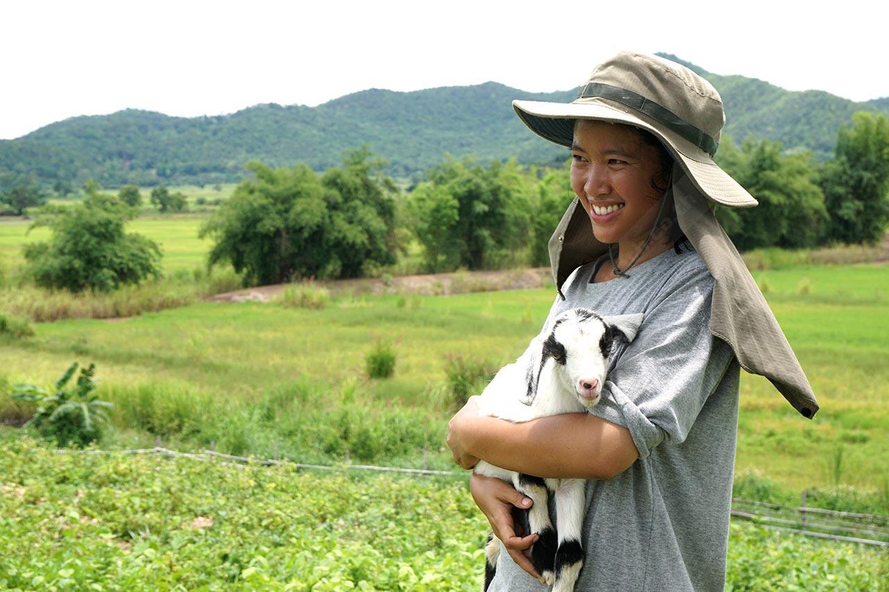 แม้ว่าเปิ้ลจะจบการศึกษาจากคณะนิเทศศาสตร์ มหาวิทยาลัยเมลเบิร์น ประเทศออสเตรเลีย แต่ก็ไม่ได้ขวนขวายหางานเงินเดือนสูงตามสไตล์เด็กนอกทั่วไป แต่มีไอเดียที่จะกลับมาพลิกฟื้นที่ดินที่แห้งแล้งให้เขียวชอุ่มสดชื่นอีกครั้ง เธอก่อร่างสร้างไร่เกษตรอินทรีย์แห่งนี้ขึ้นมาด้วยความเชื่อที่ว่า คนเราสามารถอยู่ร่วมกับธรรมชาติได้อย่างสมดุลและยั่งยืน