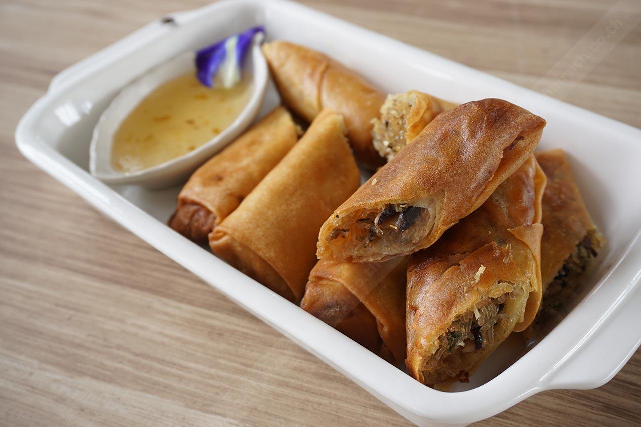 จานนี้จะทานเล่นก็ได้ ทานเป็นกับข้าวก็ดี แป้งเปาะเปี๊ยะทอดได้กรอบเหลือง ไม่อมน้ำมัน ส่วนไส้มีความพิเศษที่ใช้สมุนไพรจีนอย่าง จิงจูไฉ่ มาเป็นหนึ่งในส่วนผสมหลัก นอกจากนี้ก็เติมเนื้อหมูสับ เครื่องเทศ และผักอื่นๆ ลงไปด้วย ชิมดูแล้วก็อร่อยดีนะ แต่ต้องจิ้มน้ำจิ้มด้วยจะได้รสชาติที่ลงตัว
