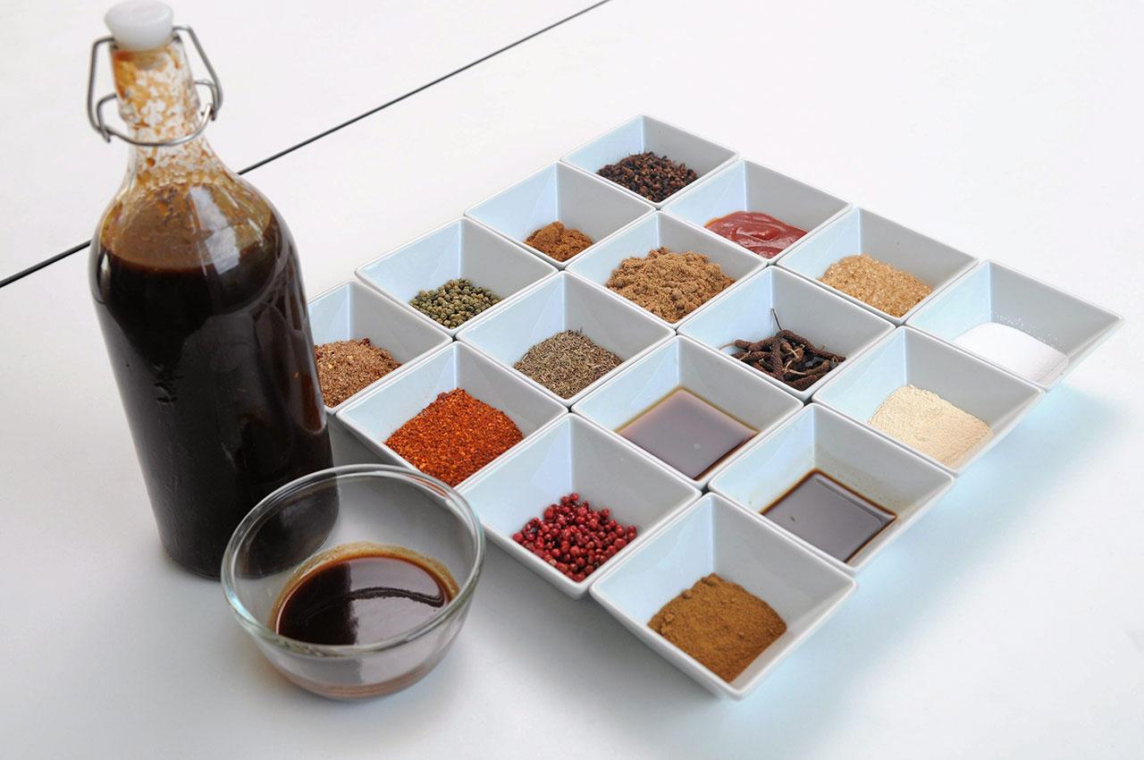 เครื่องปรุงซอสบาร์บีคิวสไตล์เท็กซัส : พริกไทยอ่อนป่น/พริกไทยดำป่น/ซอสไก่งวง/ซอสมะเขือเทศ/น้ำส้มสายชูหมัก/พริกเสฉวน/ผลดีปลีแห้ง/ใบไธม์ (Thyme)/ผงพริกปาปริก้ารมควัน/ผงยี่หร่า/น้ำตาลทรายแดง/เมล็ดมัสตาร์ด/ น้ำตาลทราย/ผงกระเทียมป่น/เกลือป่น/พริกคาเยนบดละเอียด (Cayenne)...วิธีทำ นำส่วนผสมทั้งหมดมาเคี่ยวให้เข้ากันด้วย ไฟอ่อน ประมาณครึ่งชั่วโมง ยกลงพัก แล้วค่อยใส่ส่วนผสมที่เป็นสมุนไพร