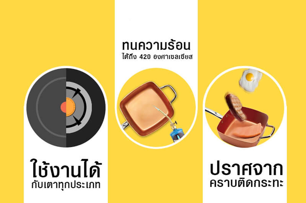 วันนี้ TVdirect.tv จึงขอนำเสนอซุปเปอร์อาวุธลับประจำครัว ที่จะมาทำให้การทำอาหารของคุณ แสนง่าย สนุก สะดวก แถมดีต่อสุขภาพมากขึ้นไปอีก กับ COPPERCHEF กระทะเคลือบผงเซรามิก ที่ “ใช้ได้กับเตาทุกชนิด” ทั้ง เตาแก๊ส, เตาไฟฟ้า, เตาอินฟาเรด, เตาหัวเทอร์โบ, เตาแม่เหล็กไฟฟ้า, เตาอบ และสามารถใช้ในการปรุงสุกี้ หรือ ชาบู บนโต๊ะอาหารได้อีกด้วย (แทรกคลิป)