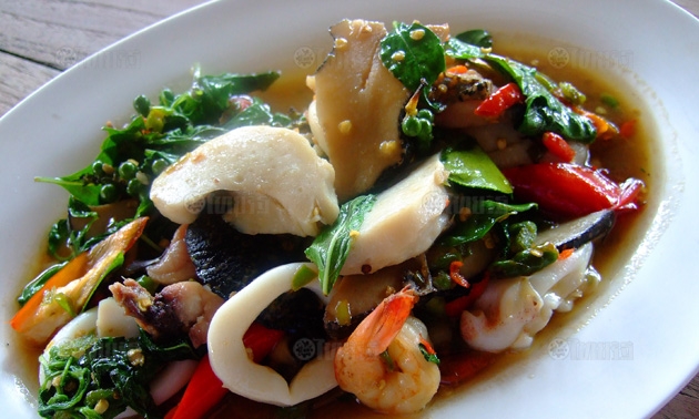เพิ่มความร้อนแรงอย่างไม่ หยุดยั้งด้วย "ผัดฉ่าทะเล" ถึงเครื่องผัดฉ่าแบบไม่มีกั๊ก ทั้ง กระเทียม พริก โหระพา กะเพรา ใบมะกรูด ใส่แบบเต็มที่ไม่มีงก ขาโซ้ยที่ชอบสมุนไพร ไม่ควรพลาด