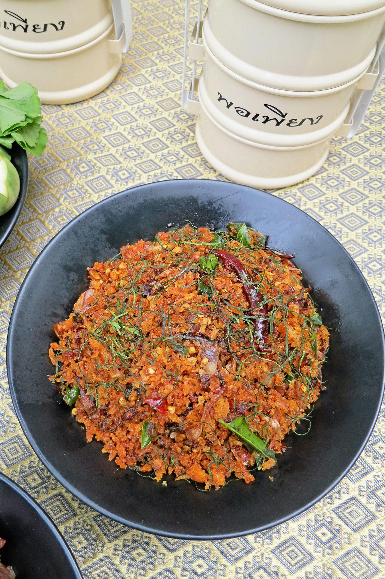 นอกจากนี้ ยังมีการสาธิตเมนูโปรด โดย 3 เชฟชื่อดัง เริ่มจาก “เมนูพริกเกลือ” โดย เชฟดวงฤทธิ์ แคล้วปลอดทุกข์ กูรูด้านอาหารไทยชาววัง ซึ่งบอกว่า เมนูพริกเกลือนี้ ไม่ได้มีส่วนประกอบจากพริก แต่ที่มีชื่อเรียกว่าพริกเกลือ เพราะเป็นอาหารประเภทของแนมเครื่องจิ้ม เป็นส่วนผสมของเกลือและน้ำตาล ซึ่งไม่ว่าจะมีพริกหรือไม่มีพริกเป็นส่วนประกอบ เราก็จะเรียกพริกเกลือ สำหรับพริกเกลือที่ในหลวง รัชกาลที่ 9 โปรด จะเป็นพริกเกลือชนิดที่มีมะพร้าวคั่วหอม เป็นส่วนประกอบ