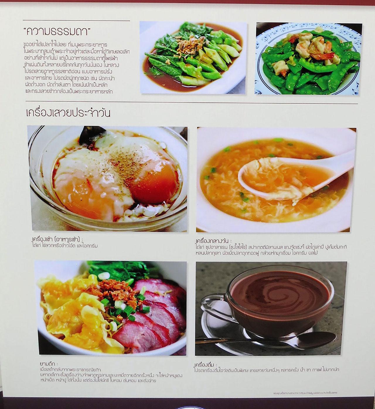 ในงานได้มีการจัดแสดงเมนูโปรดของในหลวง รัชกาลที่ 9 ได้แก่ พริกเกลือ, สปาเกตตีมิลานเนส, ไข่พระอาทิตย์, บะหมี่หมูแดง, ผัดผัก ถั่วงอกถั่วลันเตา ผัดผักคะน้า, ไชโป๊ผัดไข่, หนำเลี้ยบผัดหมู, พริกขิงปลาฟู, หมูสะเต๊ะ และของหวาน ตะโก้แห้ว ซึ่ง เขมทัตต์ พลเดช นายกสมาคมวารสารศาสตร์ ธรรมศาสตร์ กล่าวว่า กิจกรรมนี้เราอยากแสดงให้ประชาชนได้เห็นตัวอย่างความเรียบง่ายของพระบาทสมเด็จพระปรมินทรมหาภูมิพลอดุลยเดช โดยอาหารแต่ละรายการนั้น มีส่วนประกอบและเครื่องปรุงที่มีประจำทุกครัวเรือน ประชาชนสามารถทำได้เองทุกบ้าน และได้เรียนรู้การดำรงชีวิตที่เรียบง่ายตามแบบพระองค์ท่าน