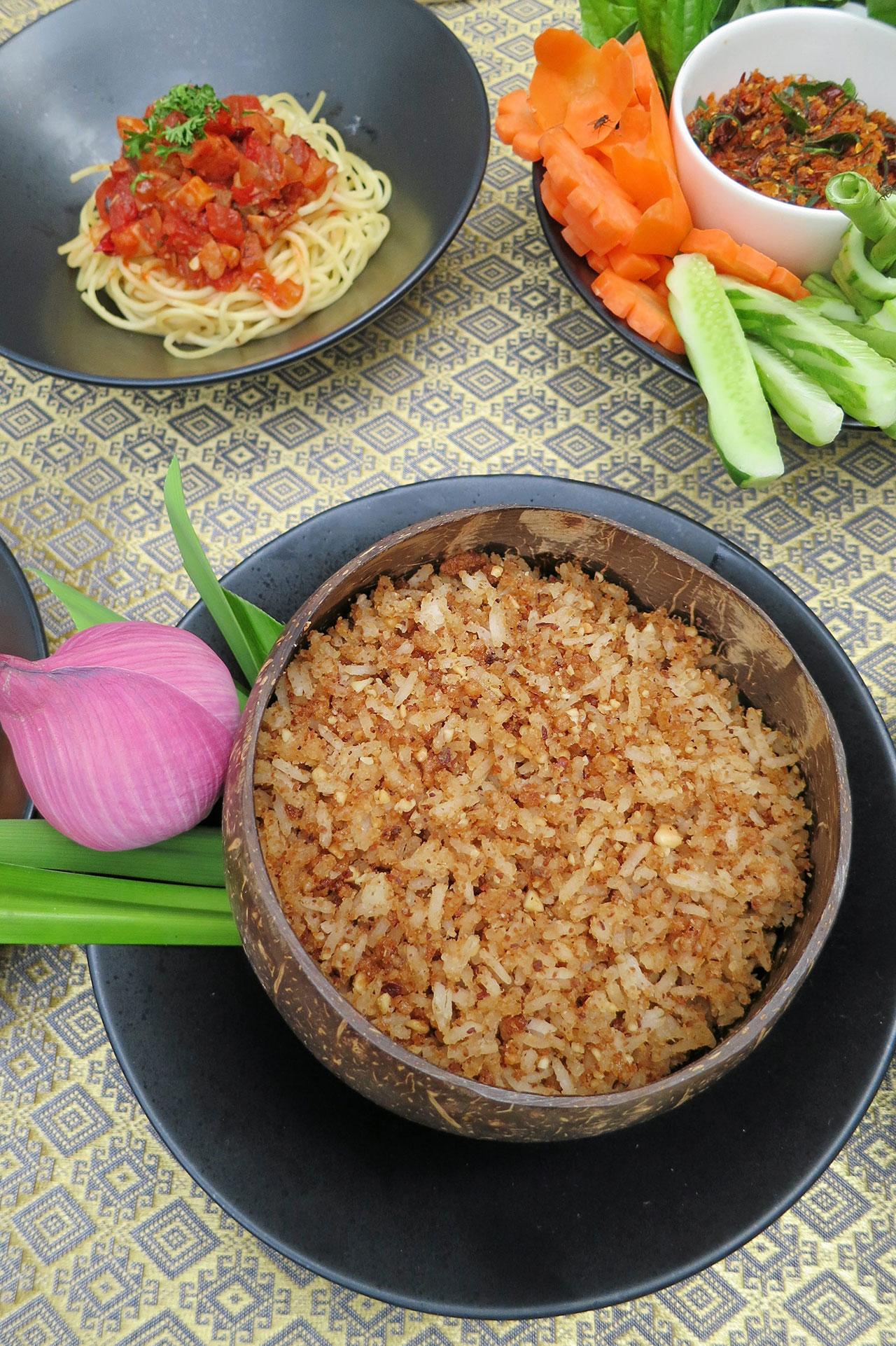 โดยส่วนผสมของพริกเกลือ ประกอบด้วย มะพร้าว ขูด ถั่วลิสง น้ำตาลทราย หรือน้ำตาลปึก เกลือ ใบเตย ข้าวสวยร้อนๆ ซึ่งเริ่มต้นด้วยการนำมะพร้าวที่ขูดเตรียมไว้มาคั่วด้วยไฟอ่อน ซึ่งน้ำมันจากมะพร้าวจะค่อยๆออกมา จนมะพร้าวเหลือง ส่งกลิ่นหอม แล้วพักไว้ จากนั้นก็จะตำถั่วลิสง น้ำตาลทราย หรือน้ำตาลปึก ซึ่งหาได้ในครัวทุกบ้าน พร้อมเกลือ และใบเตย ให้เข้ากัน แล้วนำมาผสมกับมะพร้าวคั่วที่ทำไว้แล้ว จากนั้นก็นำไปคลุกกับข้าวสวยร้อนๆ ก็รับประทานได้แล้ว เมนูนี้ถือเป็นอาหารจานหลัก ที่ทำให้เราเจริญอาหาร มีรสชาติหวาน มัน กลมกล่อม และมีกลิ่นหอมของมะพร้าวคั่ว