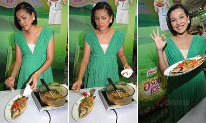 หน่อยยอมรับอย่างไม่อายเลยว่า ตอนแรกที่หัดเข้าครัว ฝีมือไม่เป็นสับปะรดเลย แม้กระทั่งเจียวไข่ ก็ยังเค็มไปบ้าง หรือไม่ก็หวานไปบ้าง จนกระทั่งมาเจอคนอร์ ถึงช่วยกู้หน้าขึ้นมา ทำให้สามารถปรุงอาหารได้มีรสชาติกลมกล่อมครบรสเหมือนเชฟตัวจริง ช่วยเพิ่มความมั่นใจให้เธออยากทำเมนูที่ยากขึ้นไปเรื่อยๆ จนตอนนี้ "หน่อย" บอกอย่างภาคภูมิใจว่า สามารถทำอาหารได้หลากหลายเมนูเลยค่ะ รวมถึงเมนูโปรดของ "น้องคุณ" ลูกชายหัวแก้วหัวแหวน ที่ชื่นชอบแกงจืดเต้าหู้หมูสับ ปลาทอด และปลานึ่ง ฝีมือคุณแม่หน่อยเป็นที่สุด ทานไปชมไป จนแม่หน่อยยิ้มแก้มปริ และเมื่อโชว์ฝีมือปรุงอาหารจนคนที่บ้านติดใจแล้ว ก็เลยนำเคล็ดลับมาบอกต่อ โดยเลือกเมนูปลากะพง (ปลาเก๋า) สามรส ที่ทำได้ง่ายมาก