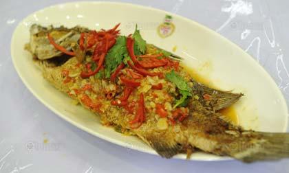 เครื่องปรุง : ปลากะพง หรือปลาเก๋า/คนอร์ อร่อย ชัวร์ (สำหรับปรุงรส) 1ชต./คนอร์ อร่อย ชัวร์ (สำหรับหมักปลา) 1 ชช./พริกไทย/ซีอิ๊วขาว 1 ชต./น้ำปลา 1 ชต./แป้งสาลี 1/4 ถ้วยตวง/พริกขี้หนูแดงโขลกหยาบ 3 ชต./กระเทียมโขลกหยาบ 2 ชต./น้ำมันพืช 2 ชต./น้ำเปล่า 1/4 ถ้วยตวง/น้ำมะขามเปียก 1/4 ถ้วยตวง/น้ำตาลปี๊บ 1/2 ถ้วยตวง