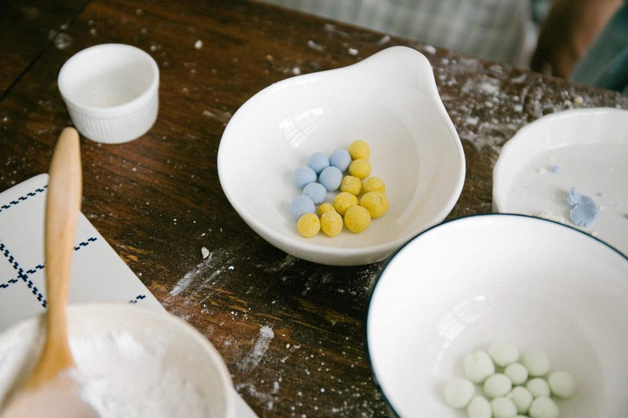 “ถ้าครอบครัวไหนยังไม่รู้ว่าจะชวนตัวจิ๋ว มาเริ่มเข้าครัวด้วยการทำเมนูไหนก่อนดี ขอแนะนำ เมนู “บัวลอยสามสี” เพราะทำง่ายไร้ความเครียด ระดับความเลอะเทอะพอประมาณ และยังได้เรียนรู้จักสีต่างๆที่เกิดจากธรรมชาติ อย่างสีเขียวที่ได้จากใบเตย สีเหลืองจากฟักทอง การปั้นบัวลอยนั้นก็ไม่ต้องใช้ความประณีตมาก จะปั้นเม็ดเล็กใหญ่ก็ทำให้เด็กได้รู้จักการกะขนาดอีกด้วย” ว่าแล้วแม่ตุ๊กตาก็ชวนตัวจิ๋วเข้าครัวทันใด