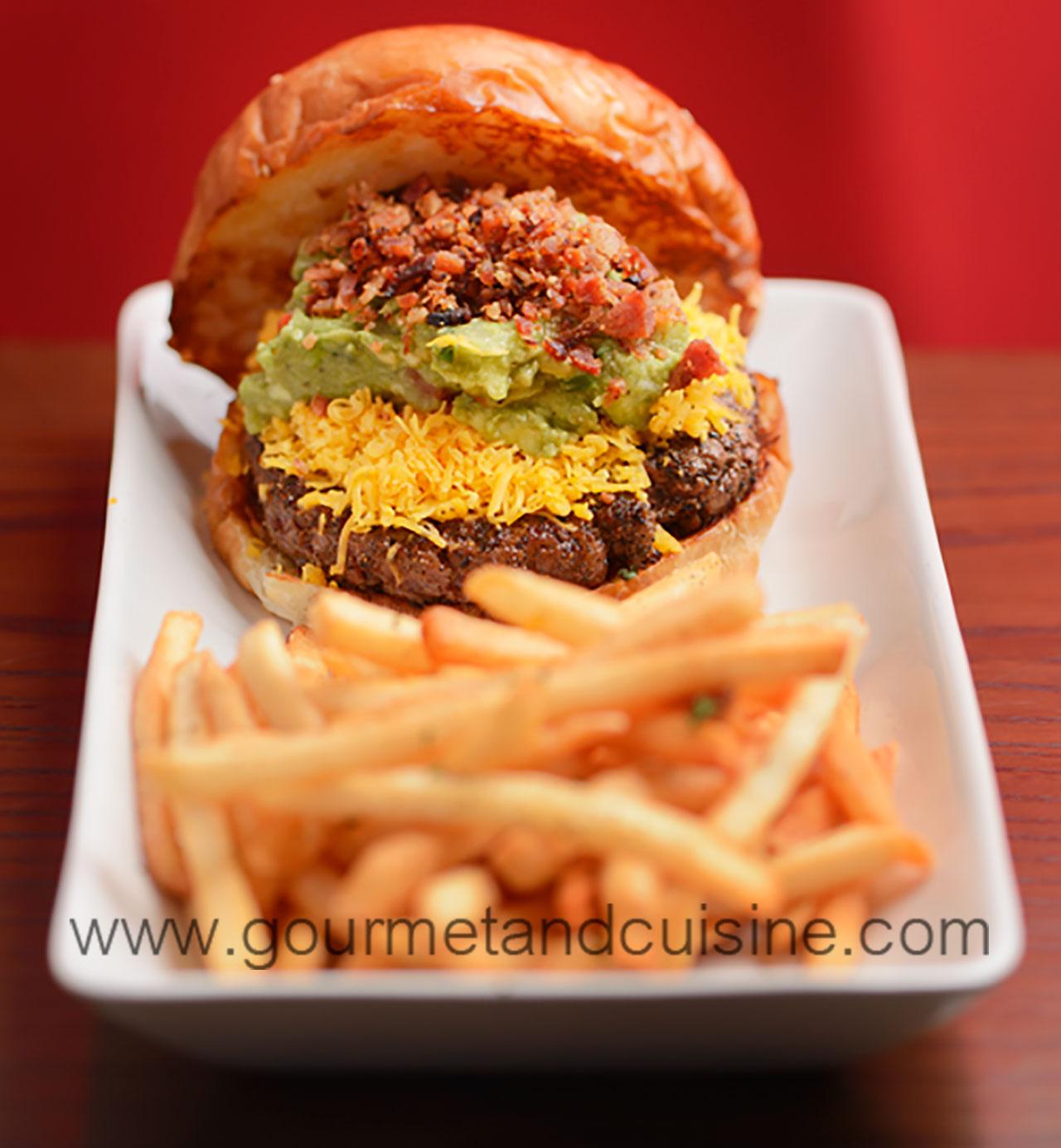 มาที่จานเด่นอย่างเบอร์เกอร์ Guacamole Cow ขนมปังยังคงเป็นบริออชที่แดเนียลใช้ประจำ แต่เพิ่มขนาดของขนมปังและชิ้นเนื้อที่ดูพรีเมียมขึ้น ชีสเชดดาร์มาเต็ม ตัดด้วยความครีมมันของกัวกาโมเล ส่วนชิ้นเนื้อยังคงฉ่ำอร่อย แต่ที่รสไทยมากเห็นจะเป็น Pork Larb Burger เบอร์เกอร์รสจัดที่ใช้ข้าวเหนียวนึ่งจากหวดแทนบริออชกับเนื้อหมูที่คลุกเครื่องลาบมาแล้ว แต่เพิ่มความเผ็ดร้อนด้วยลาบมาโยและพริกทอดโรยใบกะเพรากรอบ