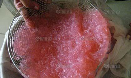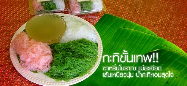 เส้นซาหริ่มร้านนี้มีให้เลือก 3 สี ขาว ชมพู และเขียว เส้นเหนียว นุ่ม ละมุนลิ้น
