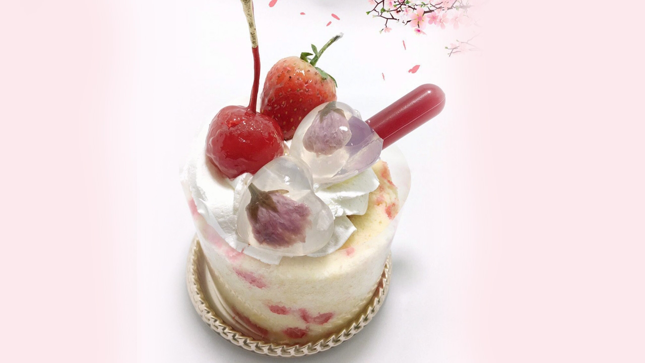 ส่วนผสมเยลลี่ดอกซากุระ : ดอกซากุระแห้ง 10 ดอก / น้ำ 235 กรัม / น้ำตาล 35 กรัม/ผงวุ้น 1 ช้อนชา/