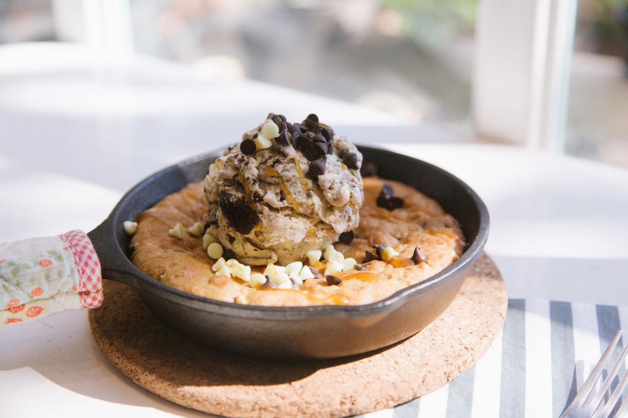 ขึ้นชื่อว่าเป็นเบเกอรี่ HOMEMADE จึงไม่น่าแปลกใจเมื่อเดินเข้าไปในร้านแล้วเราจะได้พบกับเมนูขนมที่แตกต่างจากร้านอื่น ไม่ว่าจะเป็น SKILLET COOKIES เมนู SIGNATURE ของทางร้าน ความแปลกของเมนูนี้อยู่ตรงที่การเลือกเสิร์ฟ SOFT BAKE COOKIE สูตรพิเศษเฉพาะของที่ร้าน อบสดๆ พร้อมด้วยไอศกรีม COOKIES & CREAM ลูกโต