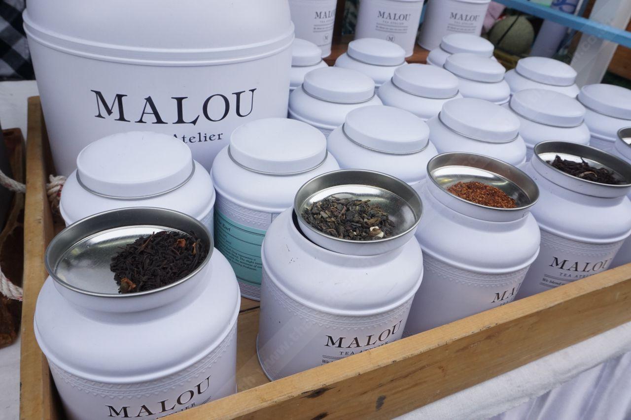 ร้านนี้แต่งร้านดูสวยเก๋ภายใต้ชื่อร้าน MALOU Tea Atelier เรียงรายไปด้วยโหลชาแห้งและกระบะไม้ขนาดใหญ่บรรจุชาสมุนไพรพร้อมดื่ม เขาเป็นชานำเข้าจากอินเดีย ศรีลังกา และมีชาอู่หลงของไทยด้วย ความพิเศษคือชากุหลาบที่เป็นชนิด Non Caffeine เราได้ลองชิมแล้ว โอ้มายก็อด! หอมมาก ก.ไก่ ล้านตัว แถมไม่มีคาเฟอีน คนไม่ถูกจริตกับคาเฟอีนอย่างเราดื่มได้สบายใจ ชอบๆ อยากให้ไปลองชิมกันดู