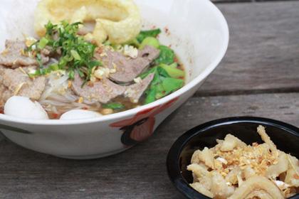ก๋วยเตี๋ยวเรือร้านนี้นำ้ซุปมีให้เลือกทั้งแบบน้ำใส และ น้ำตก(ใส่เลือด) ทางร้านคัดเลือกเนื้อวัวส่วนต่างๆ มาให้ลิ้มลองกันอย่างมากมาย เส้่นก็มีการเลือกสรรค์ (ปราณีมากกว่าหลายๆร้าน) มาคราวนี้ก็เลยของจัดมาลองกันหน่อย ผมสั่งเส้นเล็กตามชอบ ไม่เปลี่ยนใจ (ผิดกับ อัสนีวสันต์ ที่ไม่กินเส้นใหญ่) อันนี้แล้วแต่ชอบ เพลงนี้ออกมาทำโรงงานเส้นแทบกระอักเลือดตายไงสะงั้น น้ำซุปแบบน้ำตกชอบมาก ไม่เข้มข้นเกินจนน่ากลัวกำลังอร่อยเชียว แถมด้วยที่ร้านมีกากหมูเจียวกับกระเทียมหอมกลุ่น แคบหมูมาเป็นเครื่องเคียงอย่างชนิดขาดกันไม่ได้ ร้านนี้มีทีเด็ดที่เด็ดขาดด้วย โดยการนำขนมจีนมากินกับน้ำก๋วยเตี๋ยวเรือซึ่งเรียกว่า "ลอยลำ" ตามชื่อร้าน ผมได้ลองหลายอย่างในร้านชอบครับ(ไม่ได้เชียร์) อยากให้หลายท่านได้ไปลองกินก๋วยเตี๋ยวเรือที่ร้านนี้ อ๋อที่ร้านมาทั้งหมูและเนื้อ ไม่ผิดกติกาใดๆ ถ้าคนไม่กินสัตว์ใหญ่ก็สามารถมากินได้