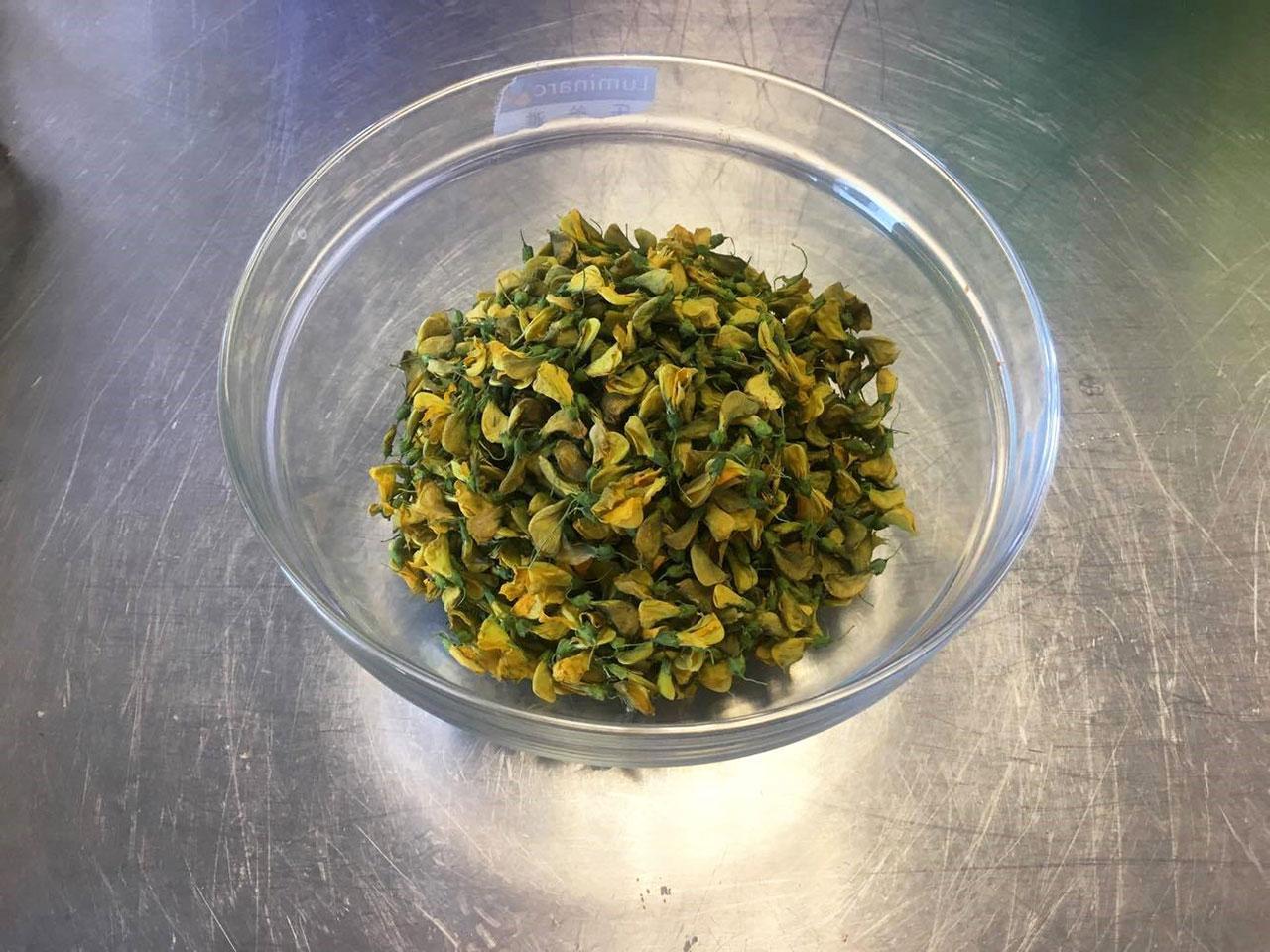 7. ดอกโสนอบหรือตากแห้งบดละเอียด 14.67 กรัม