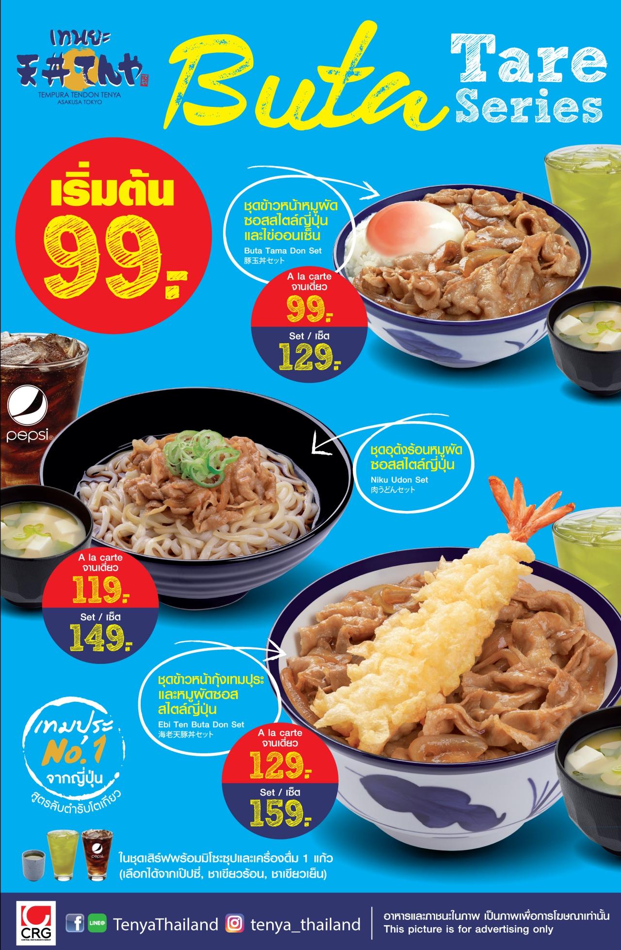 เทนยะ ชวนชิม “Buta Tare Series” 3 เมนูใหม่ สามารถเลือกรับประทานคู่กับเส้นอุด้ง เหนียวนุ่ม ก็อร่อยไม่เบา มีให้เลือกอร่อยทั้งแบบจานเดี่ยว หรือเลือกเต็มอิ่มคุ้มค่าในแบบเซต ที่เสิร์ฟพร้อมเครื่องดื่ม 1 แก้ว และซุปมิโซะ