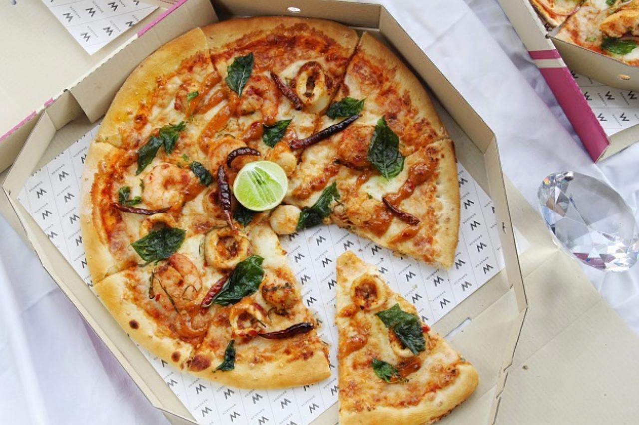 - พิซซ่าหน้าต้มยำซีฟู้ด : ราคา 450 บาท หมึก, กุ้ง, หอยเชลล์, ต้มยำมายองเนส, ผักรวม, เกลือ, มะนาว, พริก, ใบโหระพา, ชีส