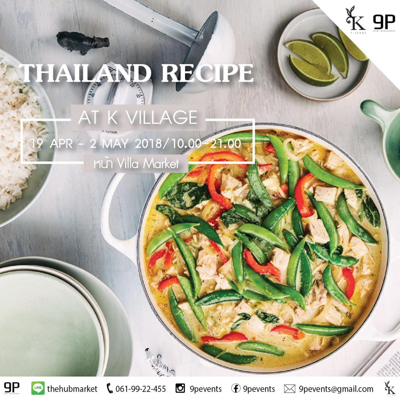 ชวนมาเดินเที่ยวชิลๆ ในงาน "Thai Recipe @K-Village" พบกับร้านอาหารชื่อดัง ที่คัดสรรมาจากแหล่งต่างๆ ทั่วประเทศ ยกวัตถุดิบชั้นเลิศมาไว้ให้เลือกซื้อกัน พร้อมปรุงสดใหม่ทุกวัน พบกันได้ตั้งแต่วันที่ 19 เมษายน - 2 พฤษภาคม 2561 ศูนย์การค้า K Village สุขุมวิท 26 (หน้าวิลล่ามาร์เก็ต)