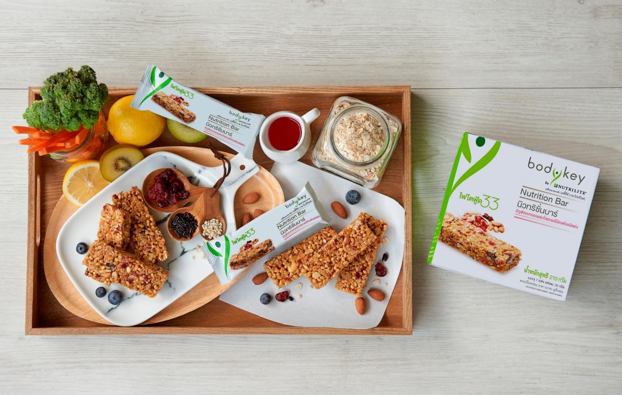 วันที่ 26 มิ.ย. 2561 เป็นต้นไป สามารถสั่งซื้อผลิตภัณฑ์บอดี้คีย์ บาย นิวทริไลท์ นิวทริชั่นบาร์ ได้แล้ว เป็นธัญพืชอบกรอบผสมถั่วและผลไม้อบแห้งชนิดแท่ง อาหารว่างระหว่างมื้อมีส่วนผสมจากผัก ผลไม้ และธัญพืชรวม 33 ชนิด มีคุณค่าทางโภชนาการทั้งโปรตีน วิตามิน และเกลือแร่