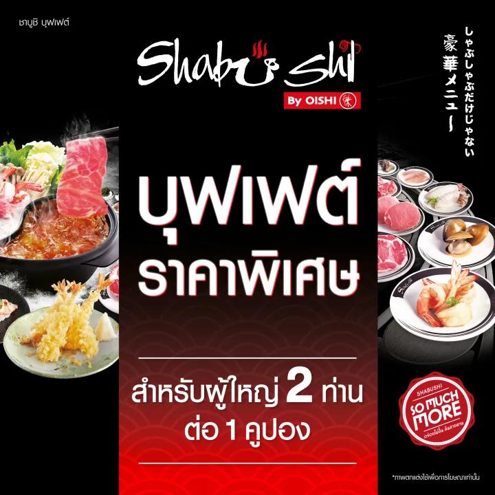 Shabushi ร้านบุฟเฟต์ชาบูและซูชิ ที่สามารถเลือกหยิบเมนูของสดสำหรับชาบูจากบนสายพาน และยังมีสเตชันซูชิ ข้าวปั้นหน้าต่างๆ ให้เลือกอีกมากมาย เรียกได้ว่าเป็นการเสิร์ฟความอร่อย 2 สไตล์ได้อย่างลงตัว ทานได้ไม่อั้นในเวลา 1 ชั่วโมง 15 นาที