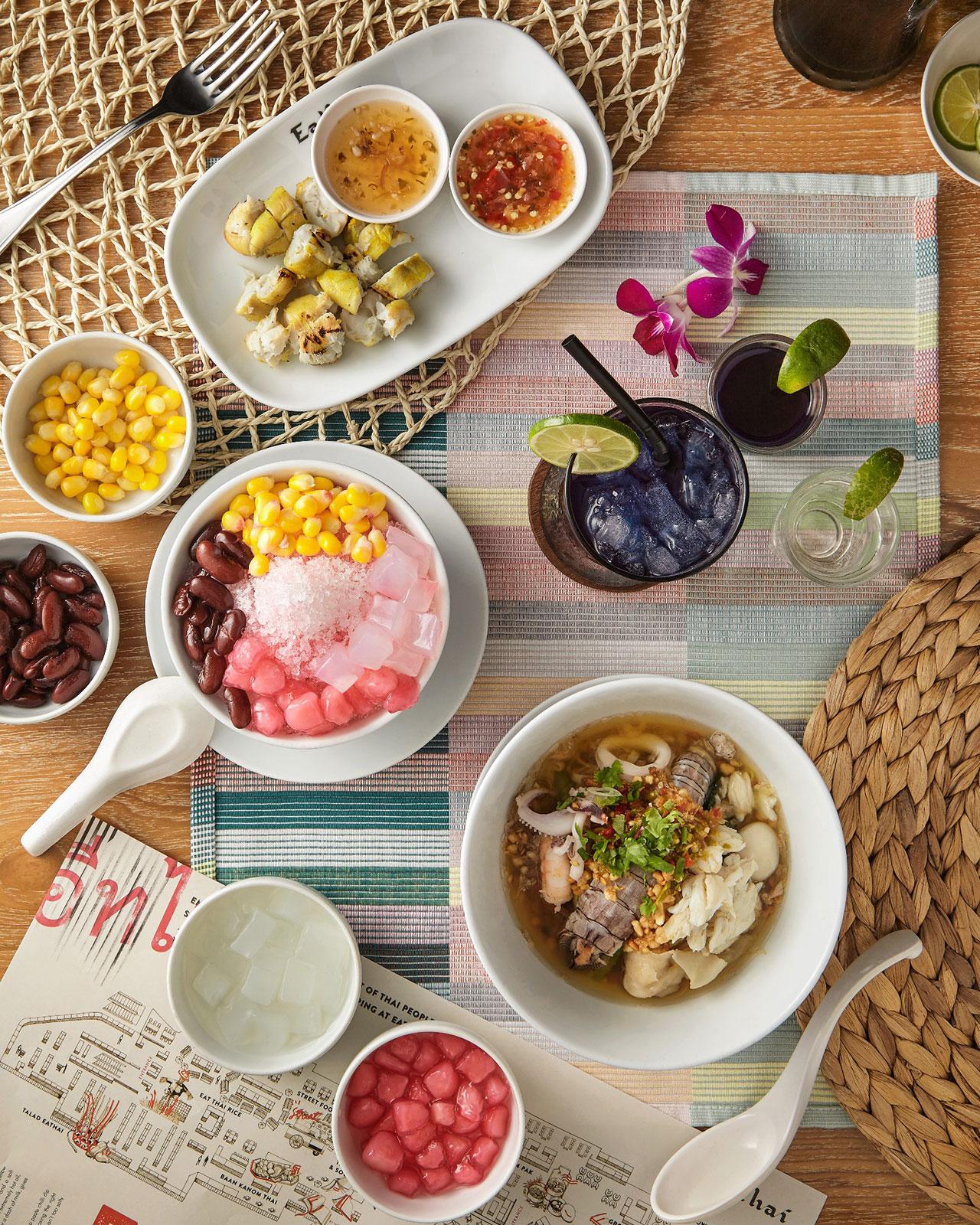 ส่วนเชฟไก่-ธนัญญา เชฟกระทะเหล็กอีกคนก็นำเสนอเมนู น้ำอัญชัน, ไข่ปลาหมึกย่าง ร้านหมึกสดย่างอ่างศิลา, ก๋วยเตี๋ยวกั้งน้ำใสรวมมิตร ร้านก๋วยเตี๋ยวกั้งบ้านเพ และน้ำแข็งไส จากโซนหวานเย็น
