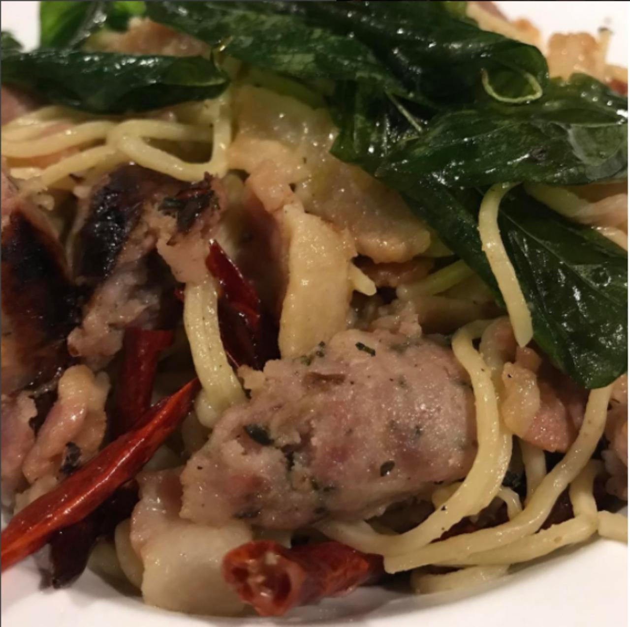 ร้านนี้บริการอาหารแนวตะวันตก มีพวกสเต็ก สลัด พาสต้า เป็นต้น แอบเห็นพี่ฉอดไปทานจานเด็ดของร้านนี้มา ได้แก่ ผัดสปาเก็ตตี้พริกแห้งกะเพรากรอบ สเต็กหมูสอดไส้ และสเต็กแซลมอนย่างราดเกรวี่