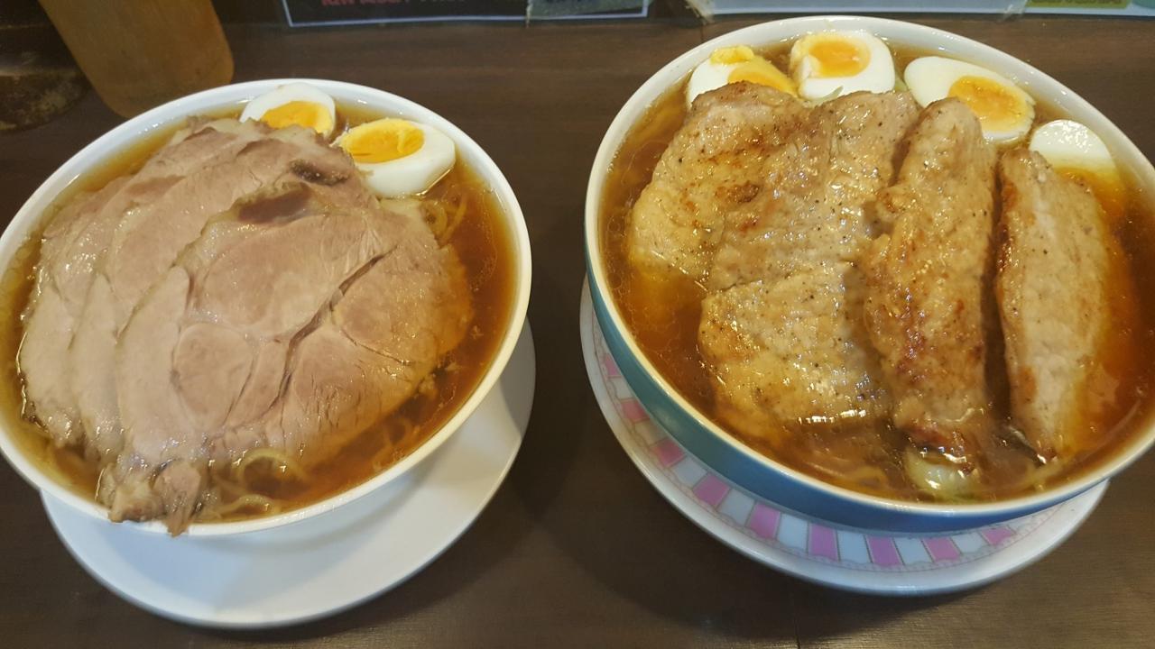 เริ่มต้นด้วยเมนูที่ใครๆ ก็อยากมาลองของ นั่นคือ ราเมงพิฆาต แบ่งเป็นหน้าต่างๆ ให้เลือกมากมาย เช่น หน้าหมูซีอิ๊วชิ้นใหญ่บึ้ม หน้าไก่ทอด หน้าหมูย่าง เป็นต้น ส่วนน้ำซุปก็มีให้เลือก ทั้งซุปเกลือ ซุปซีอิ๊ว ซุปเต้าเจี้ยว ซุปเต้าเจี้ยวใส่เนย แค่ไซส์ปกติก็สามารถแบ่งทานกันได้ 3 คนแล้ว แต่ถ้าจะเอาใหญ่กว่านั้นก็เป็น ‘ไซส์พิฆาต’ นี่แหละ ขนาดชามเส้นผ่านศูนย์กลาง 20 ซม. สั่งมาชามเดียวกินได้ 4-5 คน