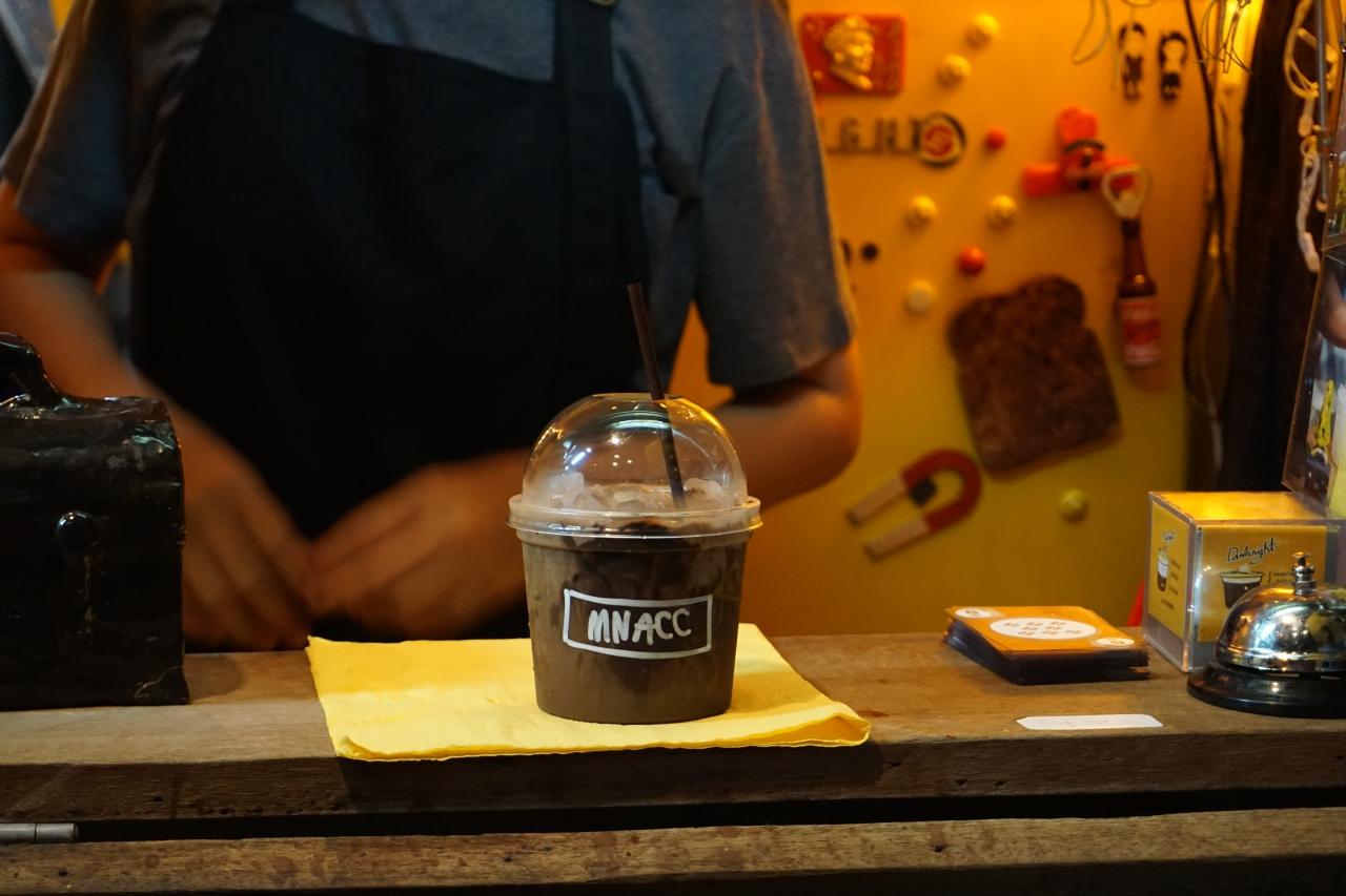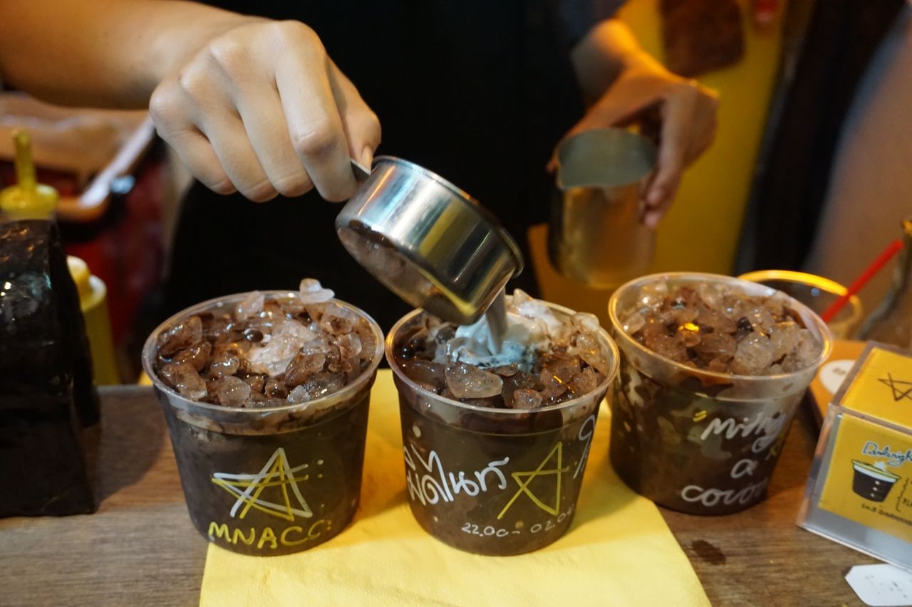 เธอบอกอีกว่า “เราไม่อยากใช้แก้วใหญ่คือ ดึกๆ เราก็กินประมาณนึงพอ ไม่ใช่กินเอาอิ่ม เหมาะกับคนที่ทำงานดึกๆ แล้วอยากเพิ่มพลังสมอง” ซึ่งแต่ละแก้วเจ้าของร้านจะเพ้นต์เองกับมือ รวมถึงเขียนลวดลายบนถุงกระดาษสำหรับใส่แก้วกลับบ้านด้วย