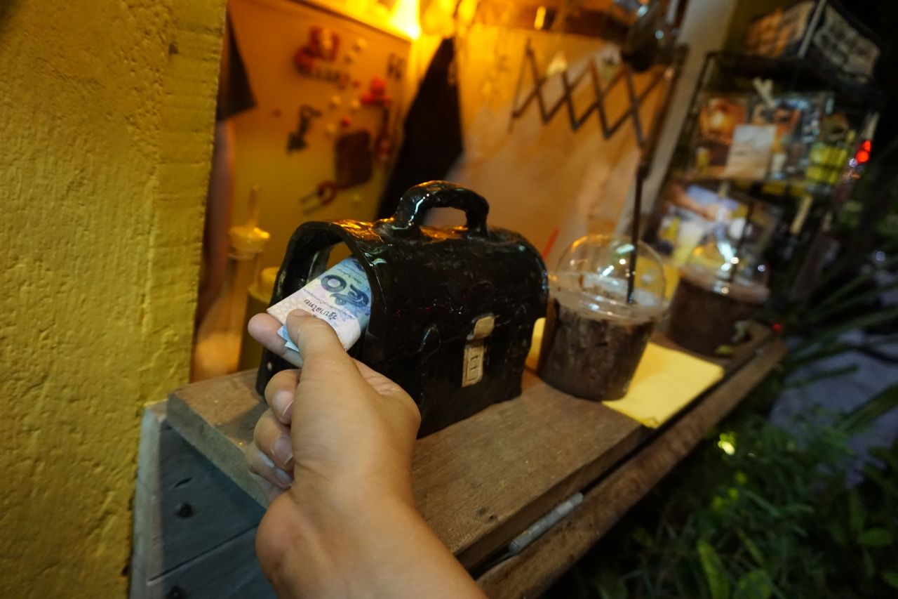 ไม่มีอะไรมาก แม่ค้าบอกว่าแค่ทำเป็นกิมมิกน่ารักๆ เท่านั้นเอง เนื่องจากโกโก้ร้านนี้ขายแก้วละ 50 บาท ก็เลยให้ลูกค้าจ่ายด้วยแบงก์ 50 ก็แล้วกัน ถ้าใครไม่มีก็ไม่ต้องกังวลไปเพราะทางร้านเขามีให้แลกแบงก์ 50 เจ้าตัวยังบอกอีกว่ามันมีความน่ารักตรงที่ใครๆ ก็อยากเก็บแบงก์นี้กัน รู้สึกว่าเป็นแบงก์ที่มีคุณค่า เอามาแลกเครื่องดื่มที่ทางร้านตั้งใจทำส่งต่อให้ลูกค้าได้กิน