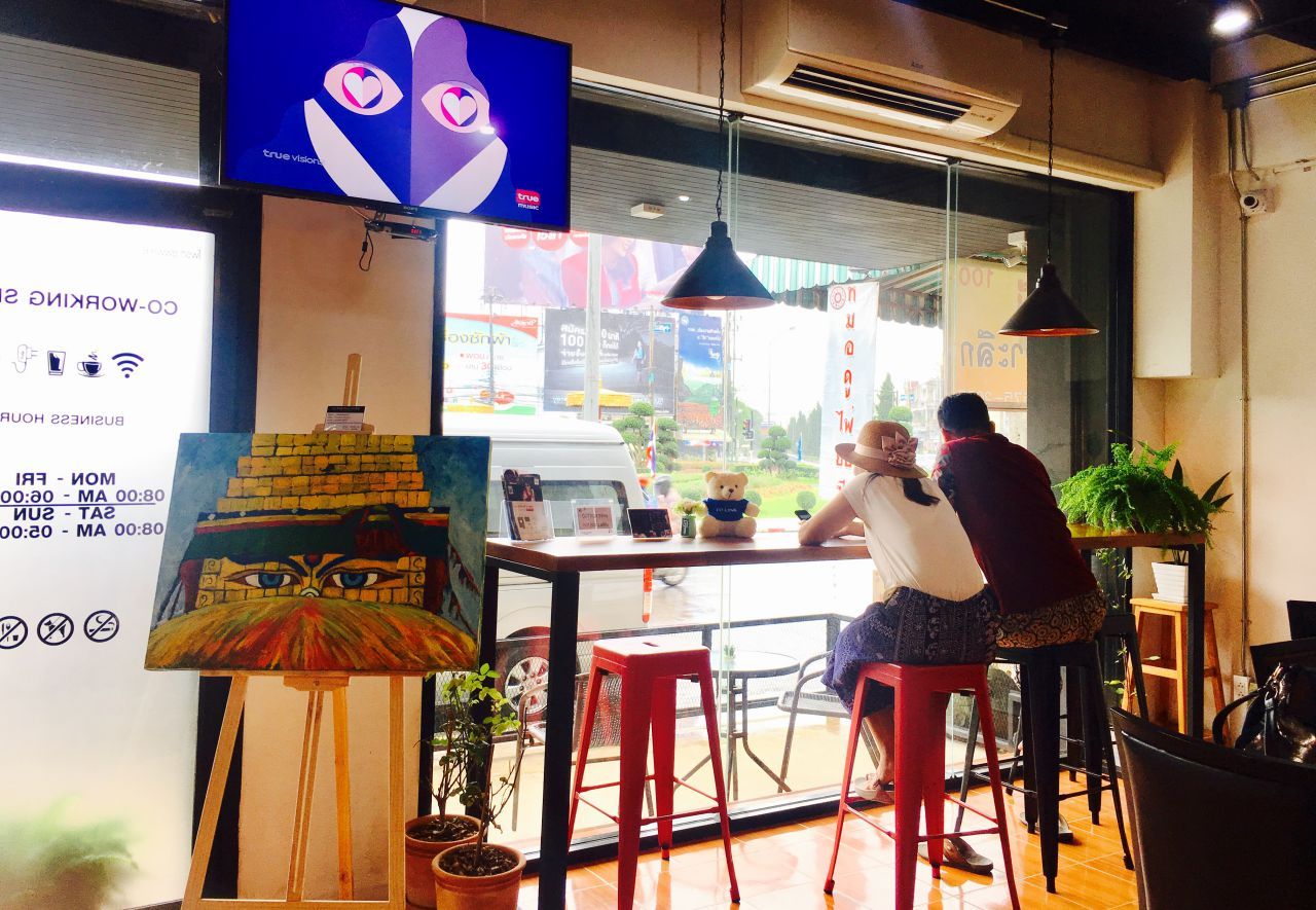 ร้านรวมศิลปะ จะเรียกว่า "คอฟฟี่แกลเลอรี่" ที่มีบริการเครื่องดื่มกาแฟก็ยังได้ แถมร้านนี้ยังอินเทอร์เน็ตแรงที่สุดในจังหวัดเชียงราย เจ้าของการันตีมา แค่นั้นยังไม่พอยังมีบริการปริ้นติ้งด้วยหมึกรักษ์โลก ผู้ที่นั่งชิลนั่งดื่มกาแฟก็ไม่ต้องกังวลเรื่องอันตรายของกลิ่นหมึกเลย เพราะเครื่องนี้แพงมาก แอบบอกหลักล้านเลยจ้า นอกจากนี้ยังเป็นร้านที่ทำกรอบรูป มีพื้นที่ Working Space มีอุปกรณ์สำนักงานไว้บริการด้วย เลิศเลอเพอร์เฟกต์ อนาคตชั้น 2 จะกลายเป็นแหล่งมีตติ้งแห่งใหม่ของจังหวัดเชียงราย คือซื้อเครื่องดื่ม 1 แก้ว แล้วนั่งทำงานทั้งวันก็ได้จ้า