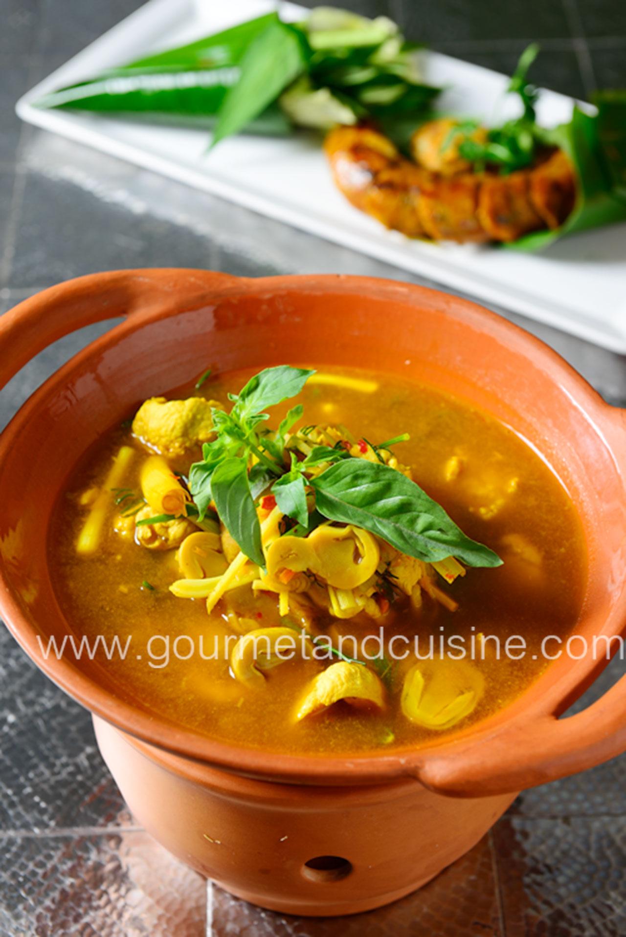 เริ่มด้วยอาหารภาคเหนืออย่างไส้อั่ว เสิร์ฟพร้อมผักเคียง ขอบอกเลยว่าหอมและน่ากินมาก ไส้อั่วที่นี่แตกต่างเรื่องเครื่องเทศที่ใส่มาแบบไม่ยั้ง ต่อด้วยแกงอ่อมไก่ต๊อก เครื่องก็ครบครันทั้งผักชีลาว ข่า ตะไคร้ เห็ด ขมิ้น แถมพริกแกงโขลก นำมาอ่อมกับเนื้อไก่ที่นุ่มแบบสุดๆ