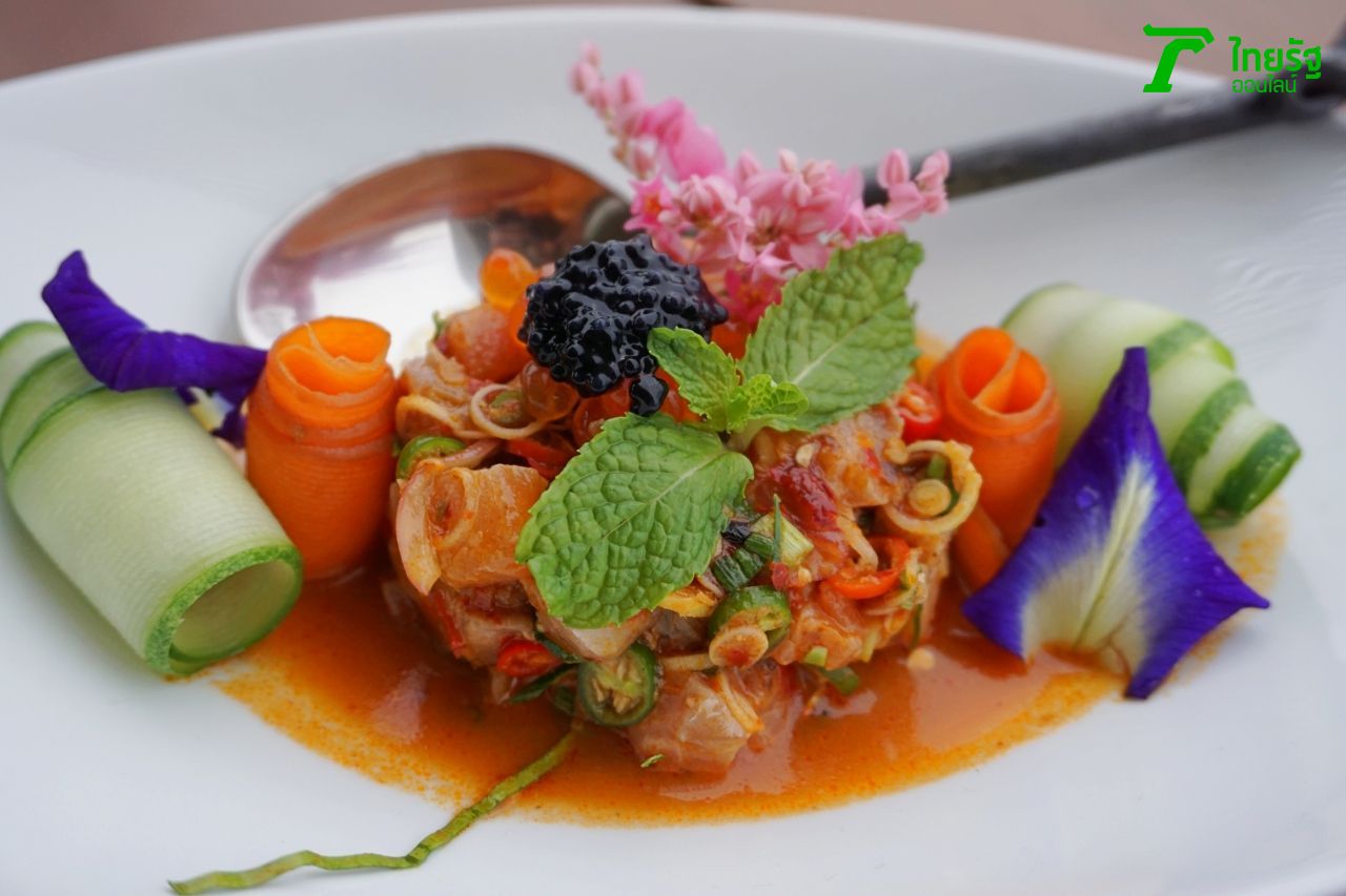 4. พล่าแซลมอน ท็อปปิ้งด้วยคาร์เวียร์