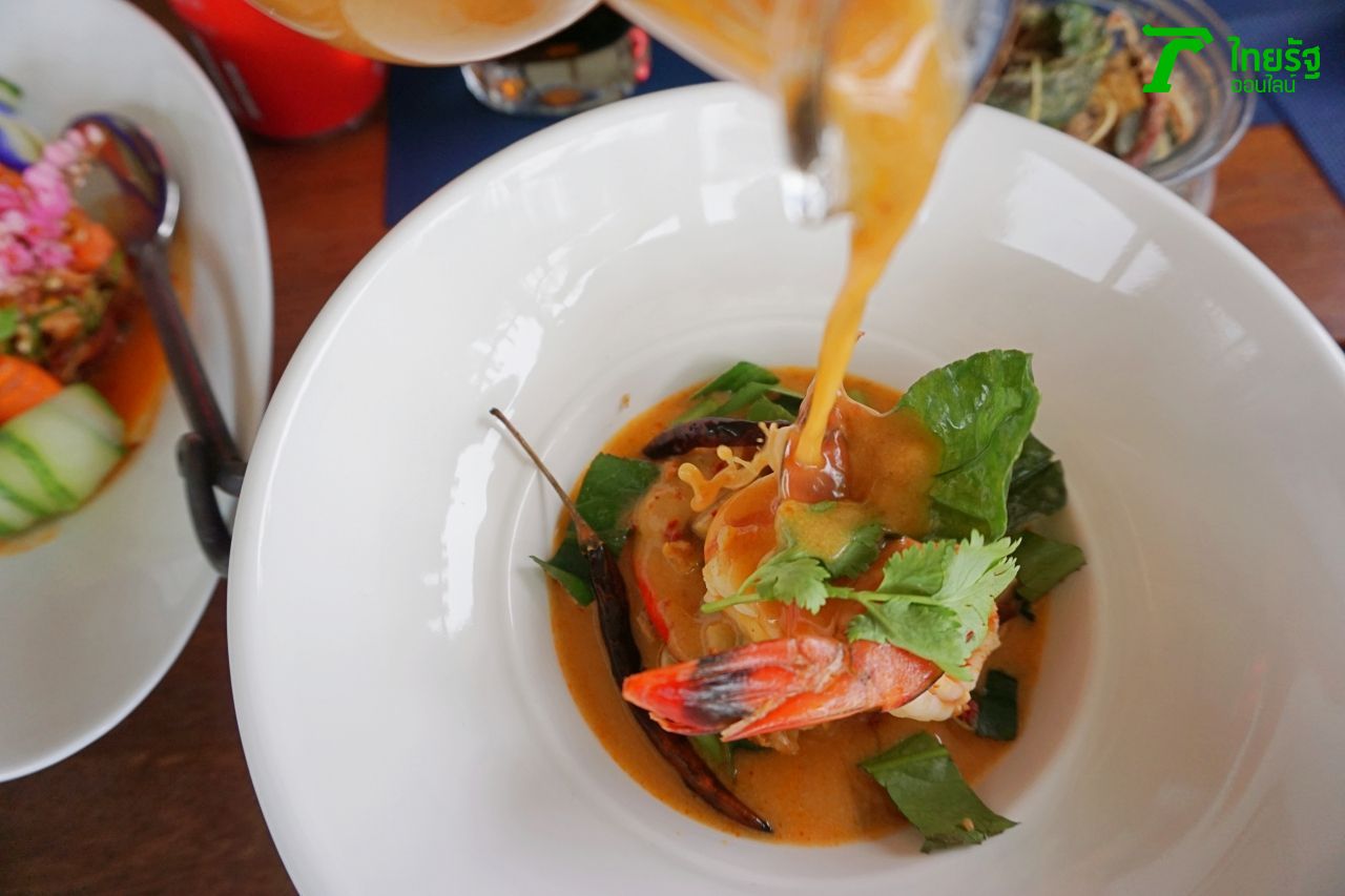 ปิดท้ายกันที่อาหารไทยออริจินอลที่หลายคนต้องสั่ง ต้มยำกุ้งใหญ่น้ำข้น ที่บอกว่าเป็นกุ้งใหญ่ เพราะกุ้งมาแบบไซส์บิ๊กเบิ้มจริงๆ ตัวหนึ่งกินได้ตั้ง 3 คำ การจัดจานก็น่าประทับใจ สมกับเป็นทีมของเชฟกระทะเหล็กประเทศไทยจริงๆ แปลงร่างออกมาได้เหมือนกับเราอยู่ในรายการเลยทีเดียว