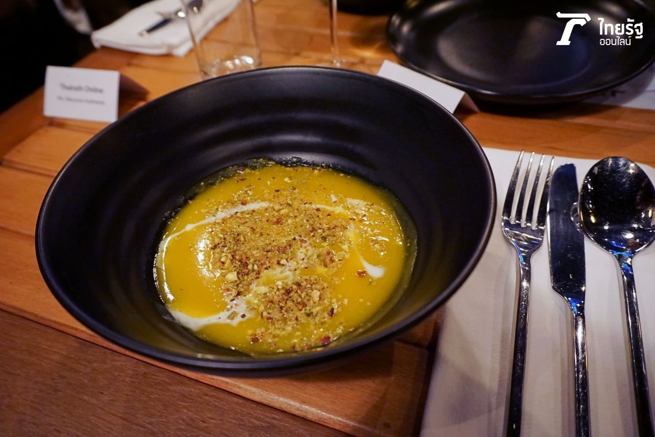 ซุปฟักทองเนื้อเนียนนุ่ม ละมุนลิ้น ทานง่าย เหมาะกับเด็กๆ ด้วยนะ ตักกินไปก็จะได้กลิ่นหอมของชินาม่อนอ่อนๆ โรยหน้าซุปด้วยกะทิข้น หอม มัน พร้อมถั่วพิตาชิโอบด เพิ่มรสสัมผัสเคี้ยวกรุบกรอบเพลินๆ
