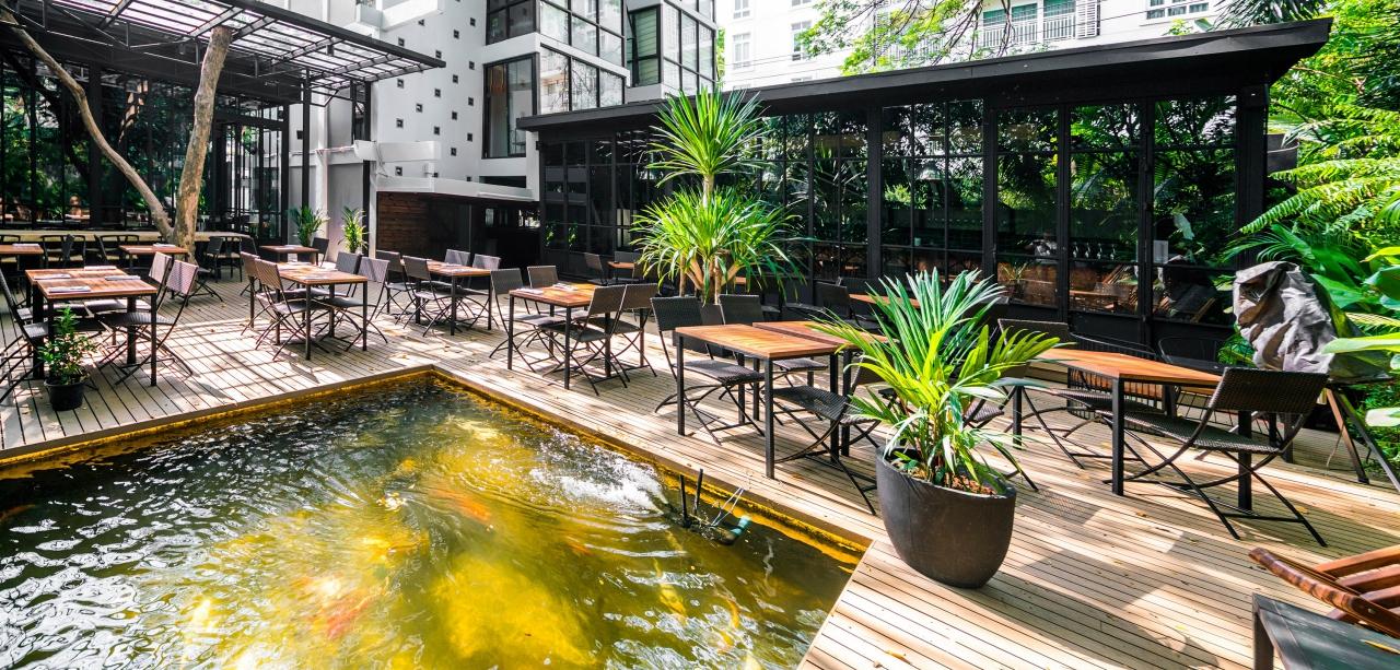 ไทยรัฐออนไลน์ มีโอกาสได้ไปร่วมงาน Grand Opening ในวันเปิดตัวร้านอาหารแห่งนี้ เปิดม่านฉลองร้านใหม่ป้ายแดง ก่อตั้งมายังไม่ถึง 1 เดือน โดดเด่นด้วยการออกแบบร้านแนวลอฟท์ ทันสมัย ภายในร่มรื่นไปด้วยต้นไม้เขียวชอุ่มและบ่อปลา บรรยากาศสบายๆ ให้ความสดชื่น ผ่อนคลายได้อย่างดี