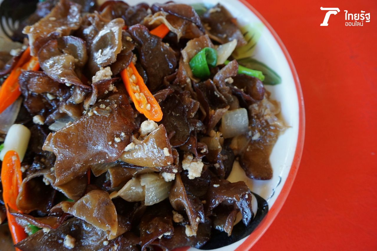 จานนี้เป็นอาหารพื้นๆ ที่หลายคนคุ้นเคยกันดี นั่นคือ ผัดเห็ดหูหนูหมูสับ เห็ดหูหนูสดกรุบกรอบ ผัดใส่หมูสับ พริกซอย หอมใหญ่หั่น ต้นหอมหั่นท่อน ปรุงรสมาได้อร่อยกลมกล่อม กินกับข้าวร้อนๆ อร่อยมาก