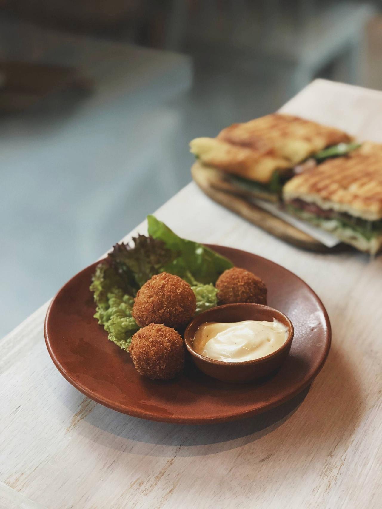 สำหรับเมนูอาหารอิตาเลียน เชฟคัดสรรอาหารจานเด็ดจากทั่วภูมิภาคในอิตาลีมาให้ได้ลองชิม เริ่มต้นที่ Olive All’Ascolana (140 บาท) มะกอกยัดไส้หมูบดชุบแป้งทอด จิ้มกับ Aioli sauce