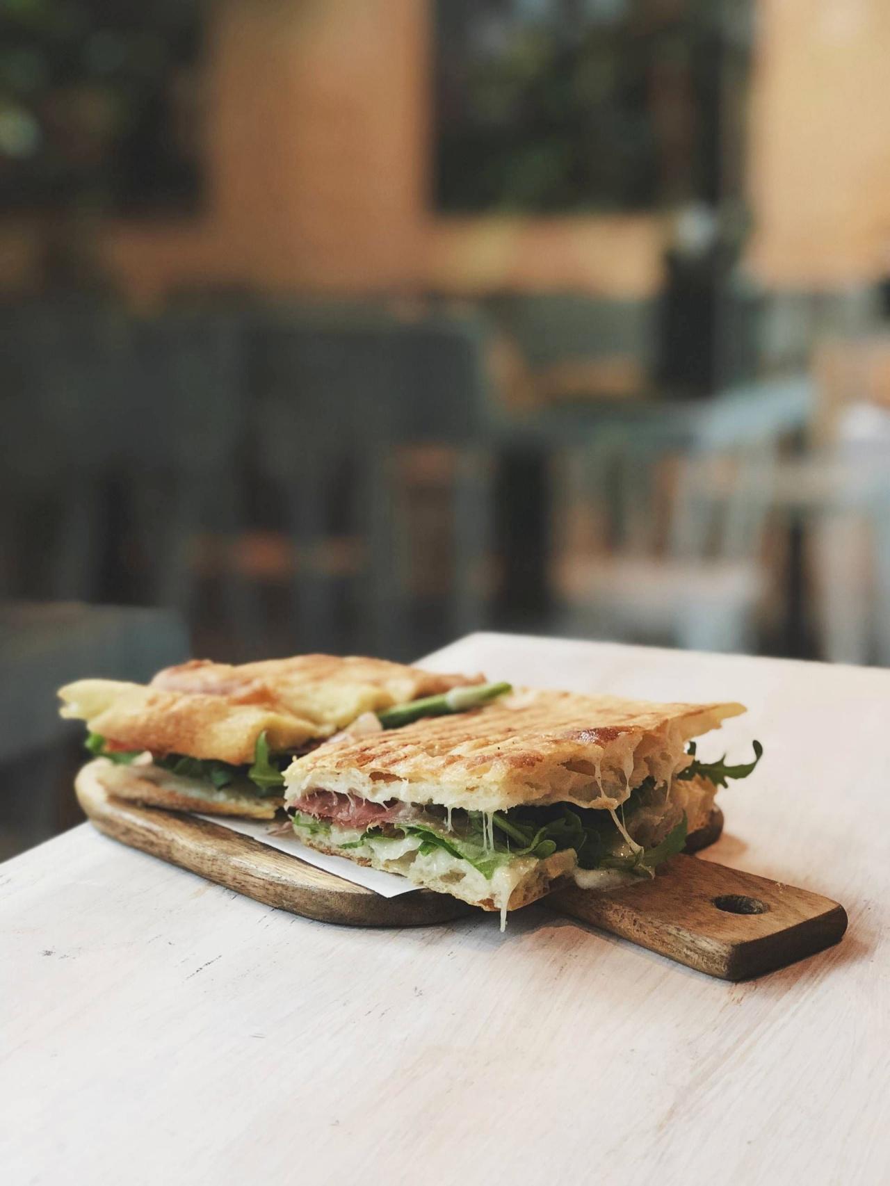 ต่อด้วย Traditional Stuffed Roman Schiacciata (220 บาท) แป้งกรอบคล้ายพิซซ่าพับกัน สอดไส้ชีส พาร์มาแฮม และผักร็อกเก็ต