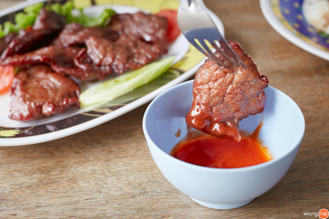 เนื้อกวางแดดเดียว 90 บาท พี่เจ้าของร้านบอกว่าเป็นเมนูโปรดของพี่โจอี้บอย ซึ่งเป็นลูกค้าประจำสมัยอยู่ร้านเก่า เนื้อกวางมีความเหนียวนุ่ม แต่สามารถเก็บรสชาติของเครื่องเทศและเครื่องปรุงรสรสเข้มข้นได้เป็นอย่างดี ทานคู่กับซอสพริก เข้ากันได้ดีครับ หากพี่โจอี้ได้อ่านบทความนี้โปรดแวะไปหาพี่จิ๊บด้วยครับ แกคิดถึง...