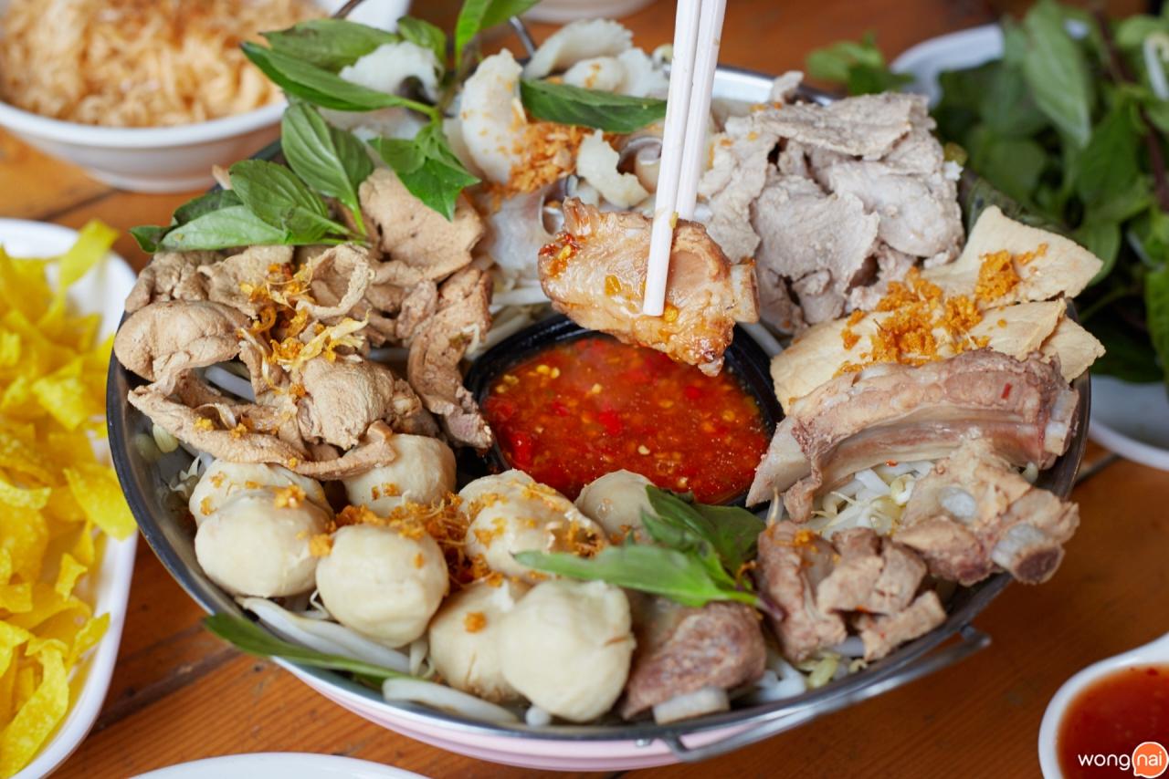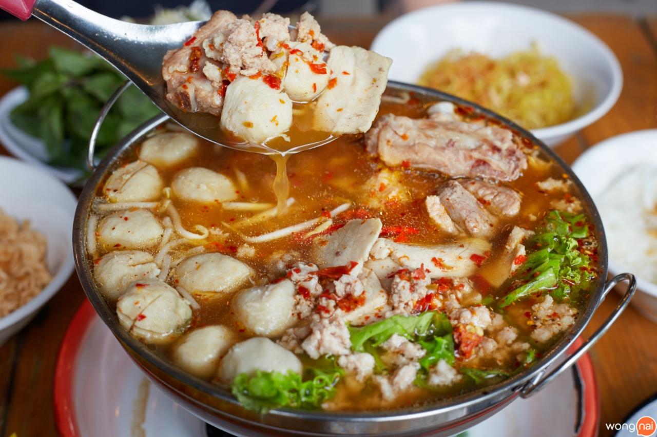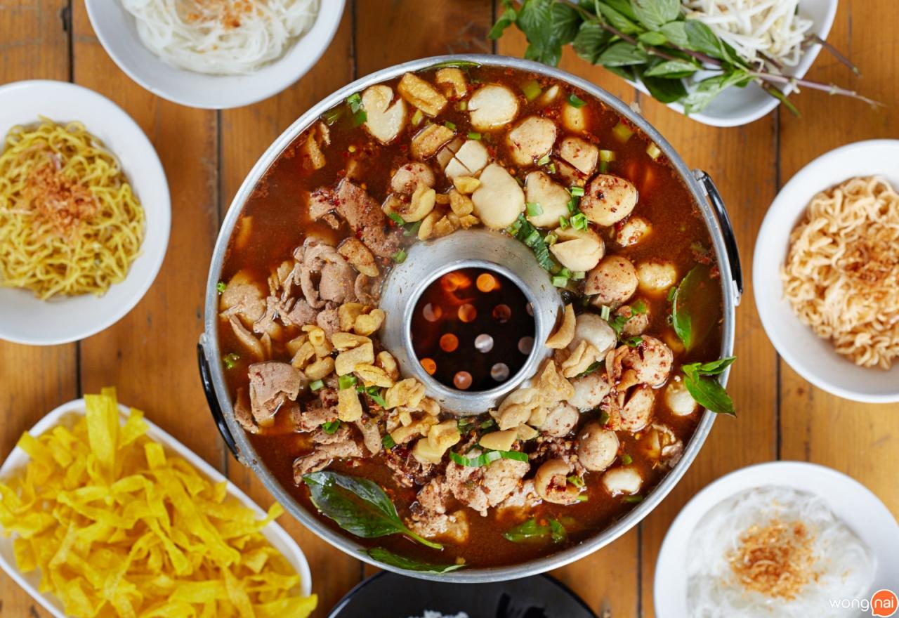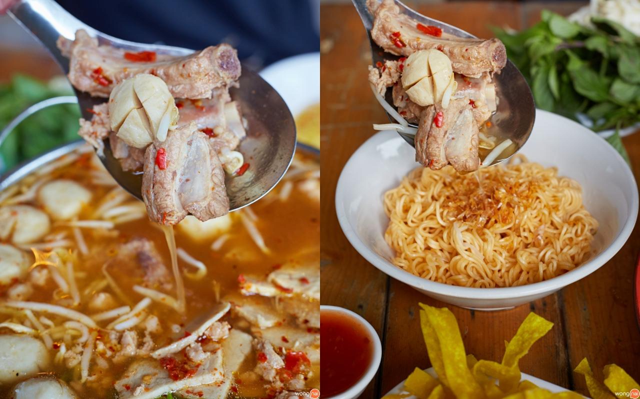 เปิดฉากกันด้วยเมนู ชุดหม้อไฟน้ำตก 399 บาท (3-6 คน) ก๋วยเตี๋ยวน้ำตกที่เสิร์ฟมาในหม้อไฟร้อนๆ ตามด้วยเส้นที่มีให้เลือกหลากหลาย ได้แก่ เส้นบะหมี่กึ่งสำเร็จรูป บะหมี่เหลือง เส้นเล็ก และเส้นใหญ่ มาพร้อมเกี๊ยวกรอบและผักเคียงแบบไม่อั้น