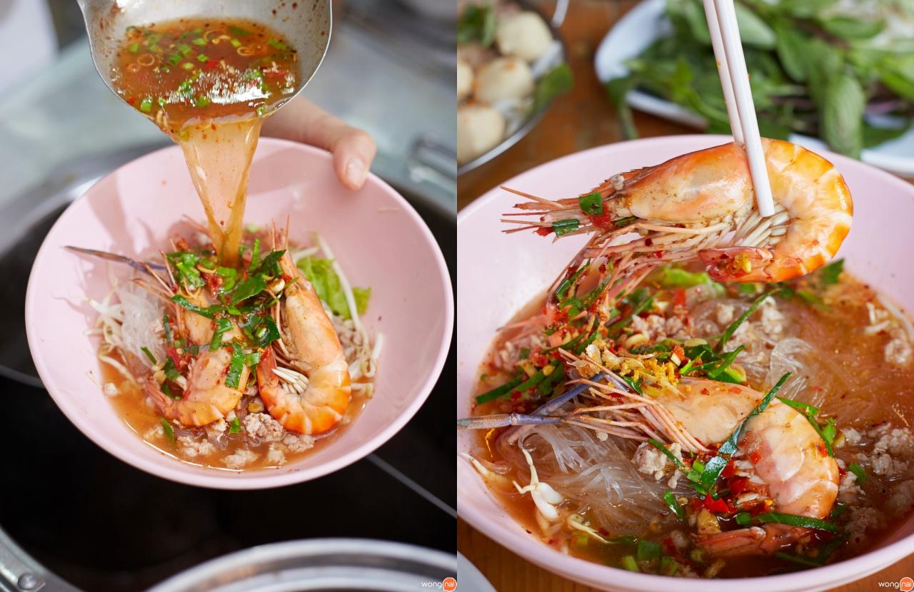 ต้มยำกุ้งวุ้นเส้น 60 บาท แน่นอนว่ากุ้งต้องใหญ่สมราคา มาพร้อมกับน้ำต้มยำรสเปรี้ยวแซ่บสไตล์ไทยๆ