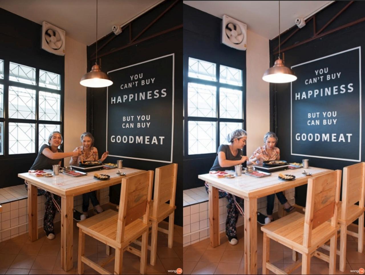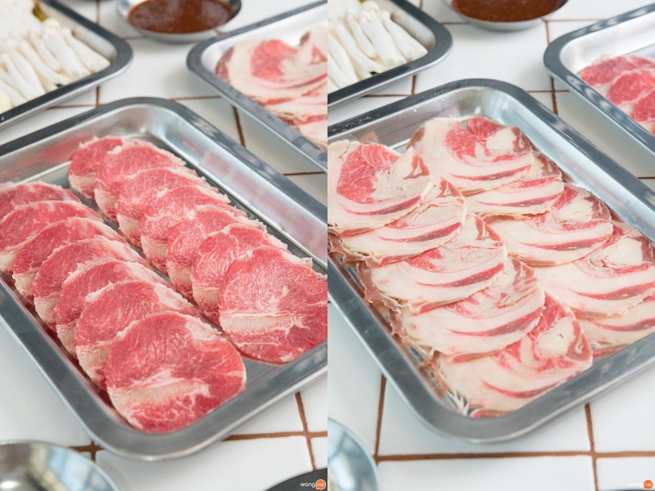 วัตถุดิบเกรดพิเศษที่ทางร้านคัดเลือกสรรมาอย่างดี ไม่ว่าจะเป็นเนื้อวัวที่มีทั้ง สันนอก, ใบพาย, ริบอาย, สันไหล่, เนื้อโหนก, เสือร้องไห้, สันสะโพก, ลูกมะพร้าว ที่มีความนุ่ม ละมุนลิ้น มาพร้อมกับเนยหอมๆ และน้ำจิ้มสุดแซ่บ