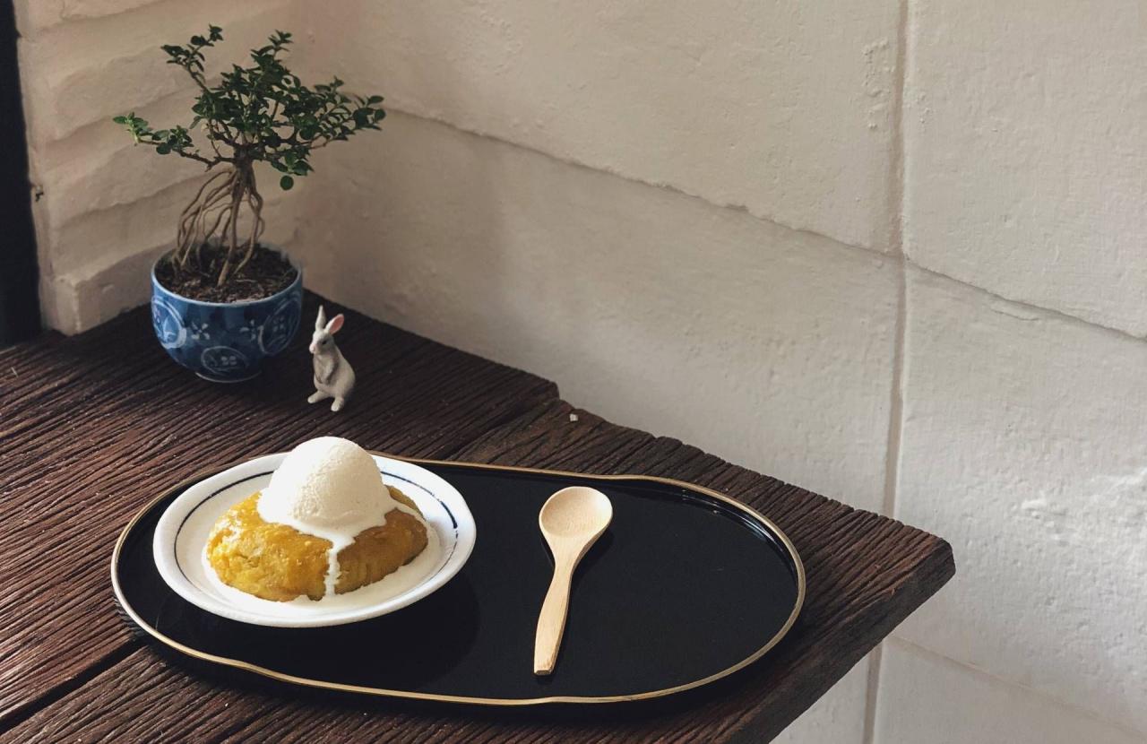 ส่วนคนที่ชอบกินมันอบ อย่าลืมสั่ง Baked Japanese Sweet Potato with Ice-cream (200 บาท) มันหวานญี่ปุ่นอบกลิ่นหอมฉุยและเนื้อร่วนหวานตามธรรมชาติ อบร้อนสดๆ ใหม่ๆ กินคู่กับไอศกรีมรสนมฮอกไกโด เสริมความเข้มข้นและรสมันหวานเป็นอย่างดี