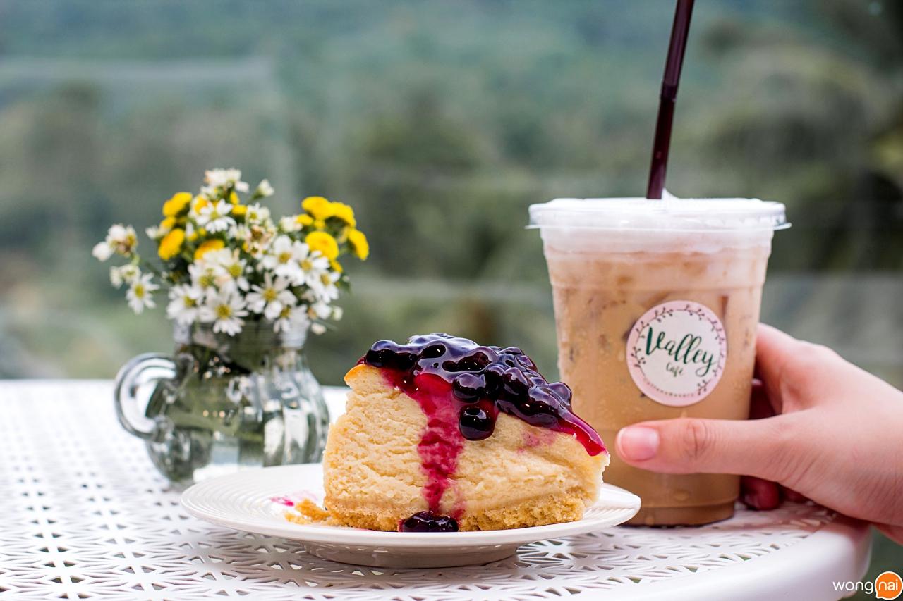 ในส่วนของคาเฟ่ชั้น 1 ให้บริการเครื่องดื่มต่างๆ รวมถึงกาแฟสดหอมๆ และเค้กโฮมเมดเนื้อเนียนนุ่ม ที่ทางร้านคัดสรรมาเป็นพิเศษเลยล่ะค่ะ เราลองสั่งลาเต้เย็นและบลูเบอร์รีชีสเค้กมาชิม อร่อยฟิน!