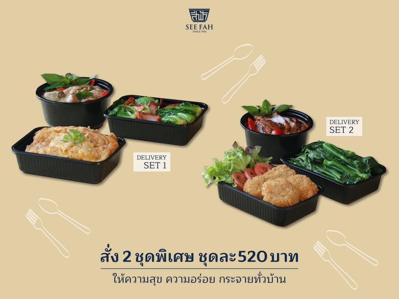 นอกจากนี้ ยังสามารถสั่ง "เมนูอาหารชุดพิเศษ" ได้ที่บ้านคุณ เลือกเลย 2 ชุด เพียงชุดละ 520 บาทเท่านั้น รับรองถูกใจ ได้ความอร่อยกันทั้งบ้าน