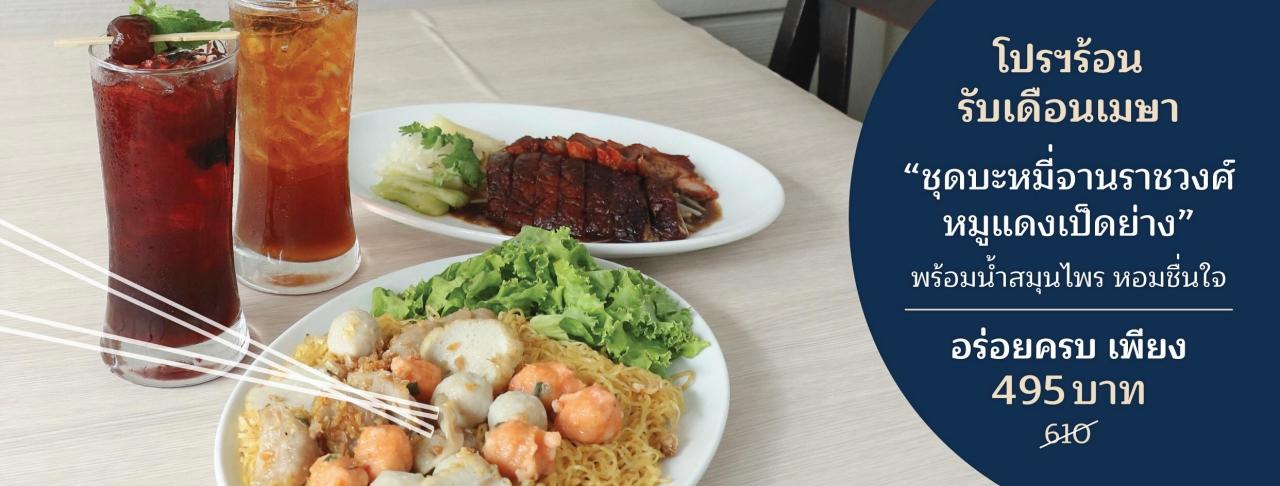 ร้านอาหารสีฟ้าปล่อยโปรโมชั่นดีๆ ประจำเดือนเมษายน ต้อนรับสงกรานต์ 2561 คือ ชุด “บะหมี่จานราชวงศ์หมูแดงเป็ดย่าง” ในราคาพิเศษเพียง 495 บาท นอกจากจานหลักแล้ว ยังเสิร์ฟพร้อมน้ำสมุนไพรเย็นชื่นใจอีก 2 แก้ว ดื่มดับอุณหภูมิร้อน เพิ่มความสดชื่น