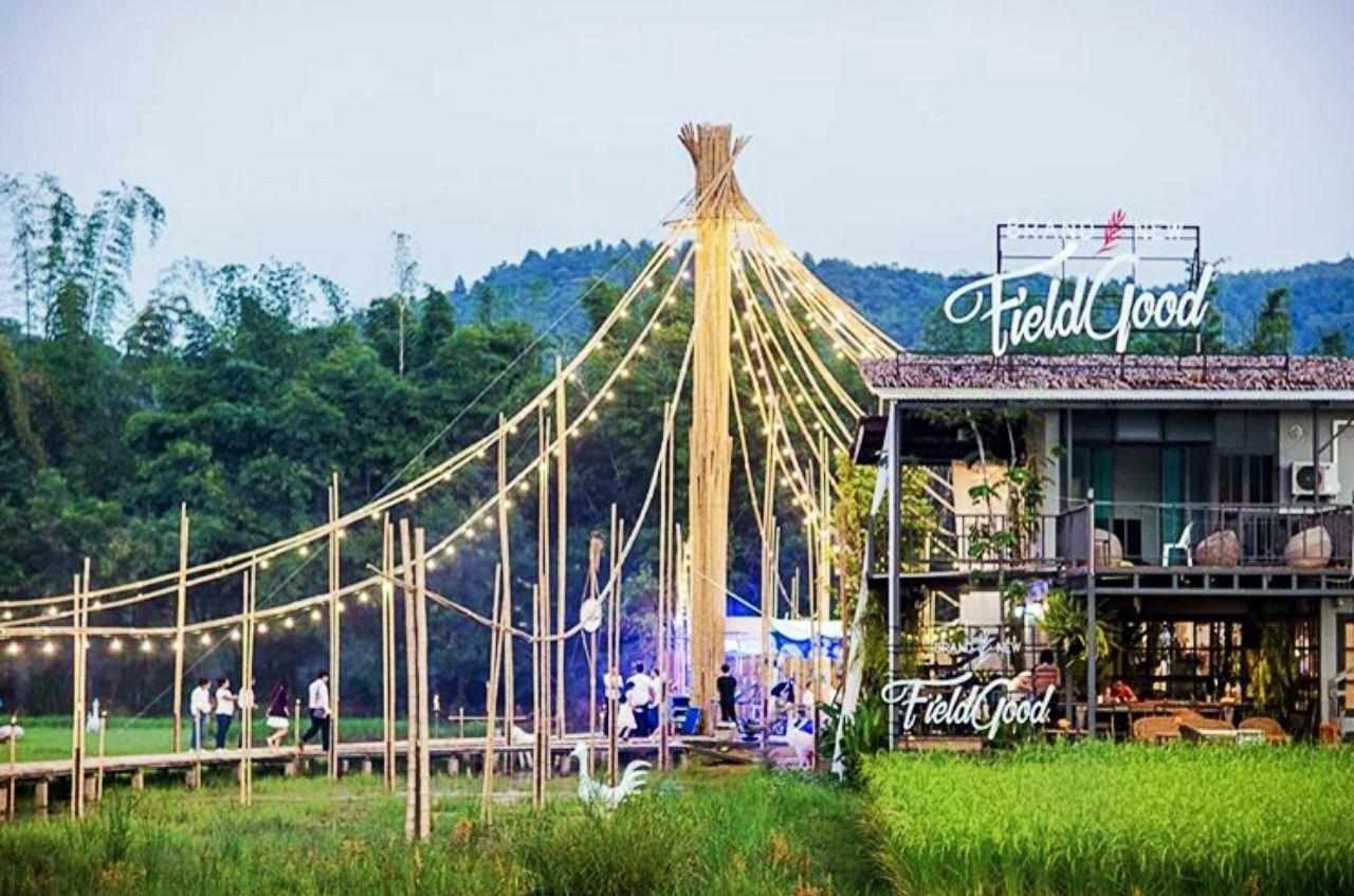 Brandnew Field Good สุดชิคของหนุ่มเป๊ก-นิว บอกว่าเป็นคาเฟ่ที่พยายามสร้างด้วยองค์ประกอบที่มีธรรมชาติมากที่สุด เช่น ไม้ ไม้ไผ่, ฟาง, ผ้าขาวม้า ผ้าขาวบางต่างๆ, และโต๊ะในร้าน และนอกร้าน จะเน้นเป็นเครื่องจักสานซะส่วนใหญ่ หากมองไปภายนอกบรรยากาศโดยรอบสีเขียวเข้มของทุ่งนาทำให้เราเย็นตา และรู้สึกสบายใจอย่างบอกไม่ถูกเลย