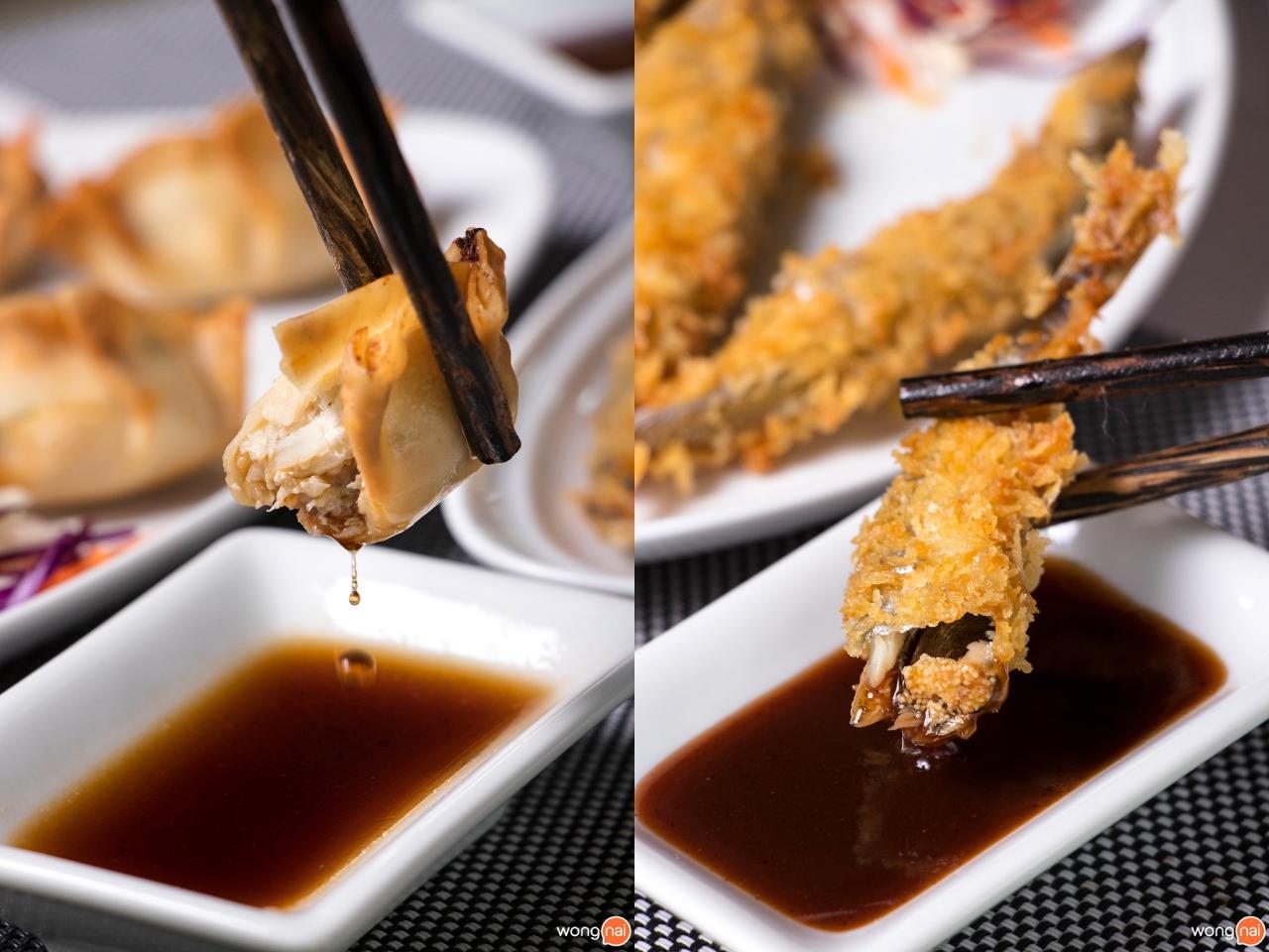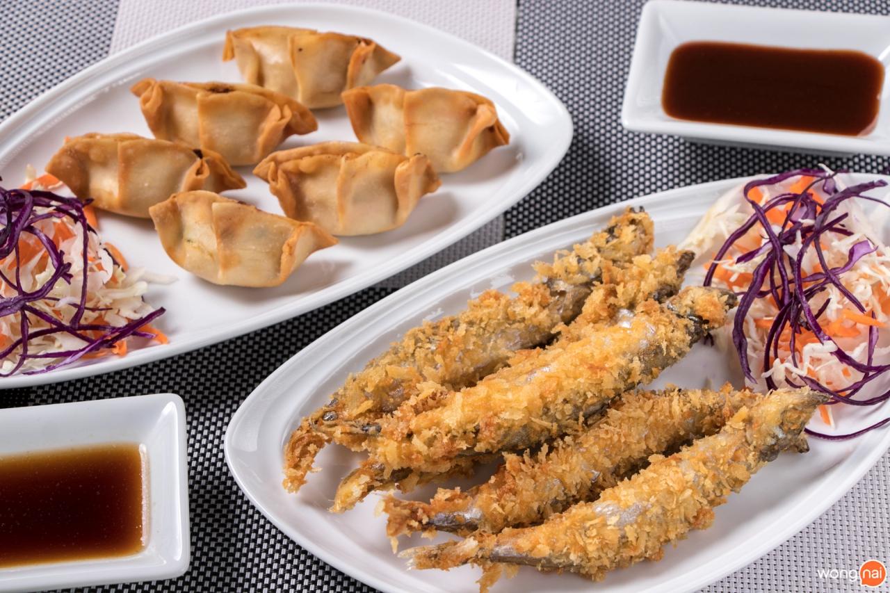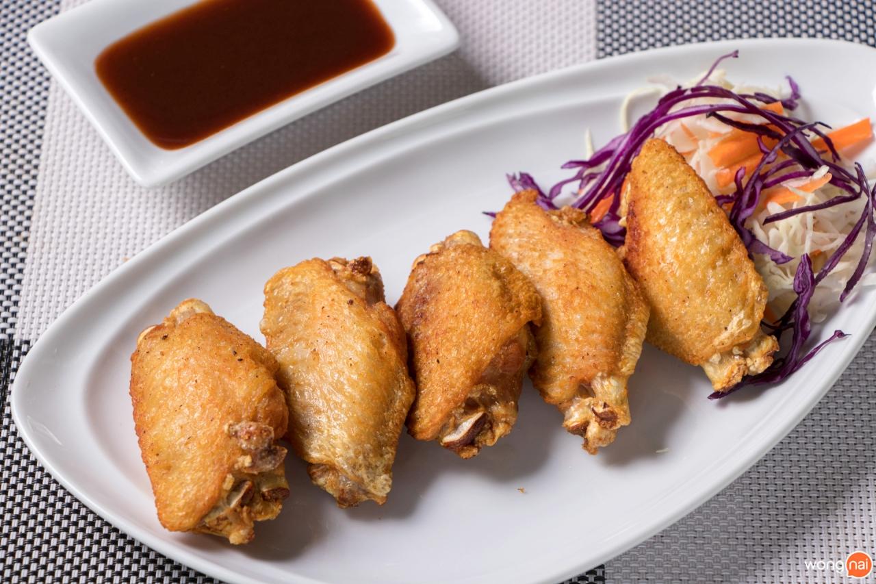 เริ่มด้วยเมนูของกินเล่นอย่าง เกี๊ยวซ่าไก่ (55 บาท) ปลาไข่ทอดกรอบ (55 บาท) และ ปีกไก่ทอดน้ำปลา (55 บาท) ที่ไม่ว่าจานไหนๆ ก็กินอร่อย เคี้ยวเพลินไม่แพ้กัน