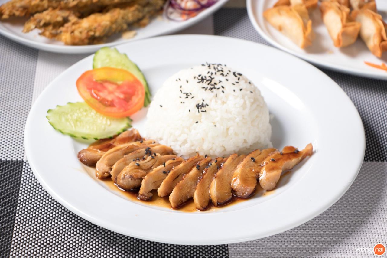 มาต่อกันที่เมนู ข้าวหน้าไก่อบซอสเทริยากิ (60 บาท) ข้าวสวยร้อนๆ เสิร์ฟพร้อมเนื้อไก่อบซอสเทริยากิเนื้อนุ่ม